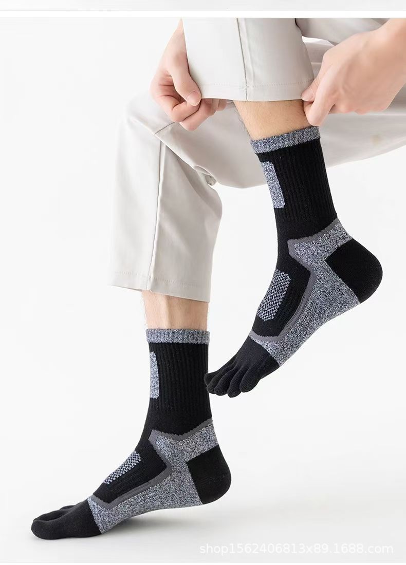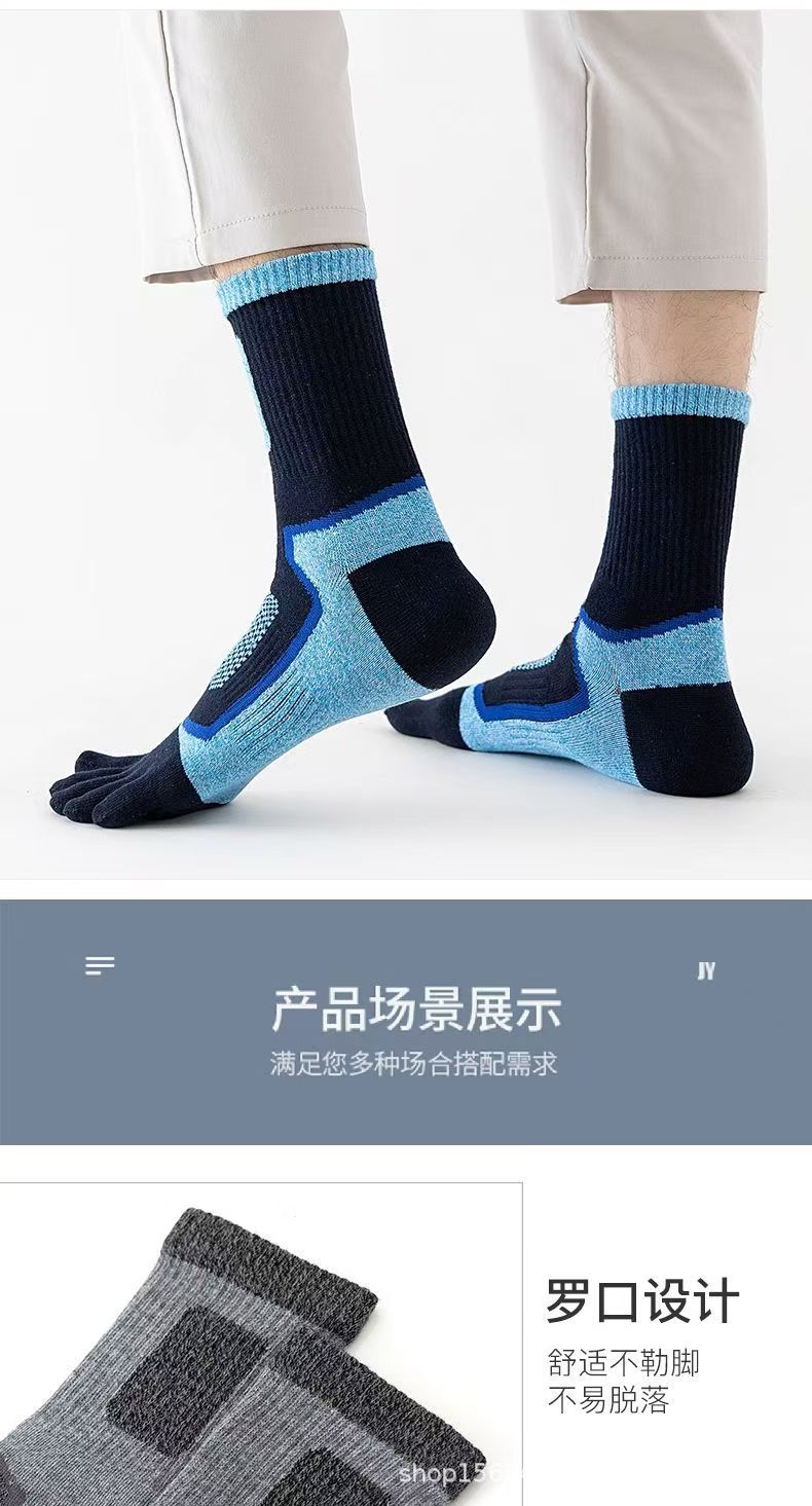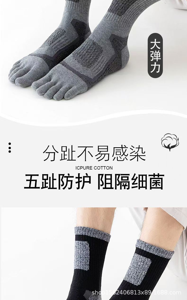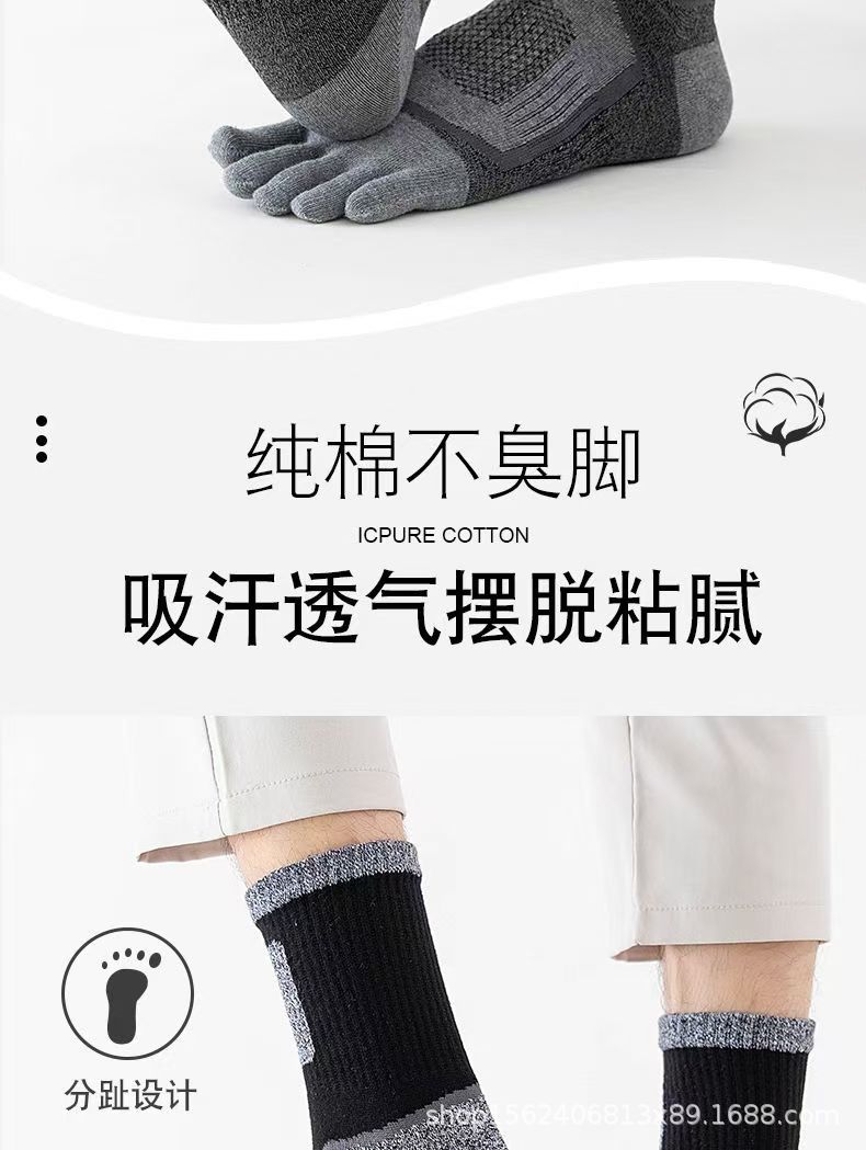 남성용 맞춤형 다섯 손가락 양말, 종아리 중간 순면 스포츠 등산용 발가락 양말, 국경 간 한국 단일 소스 공장스토어 가기