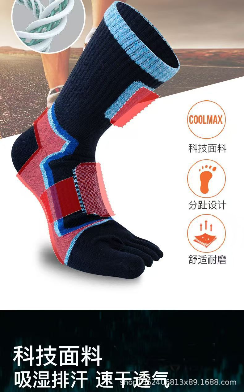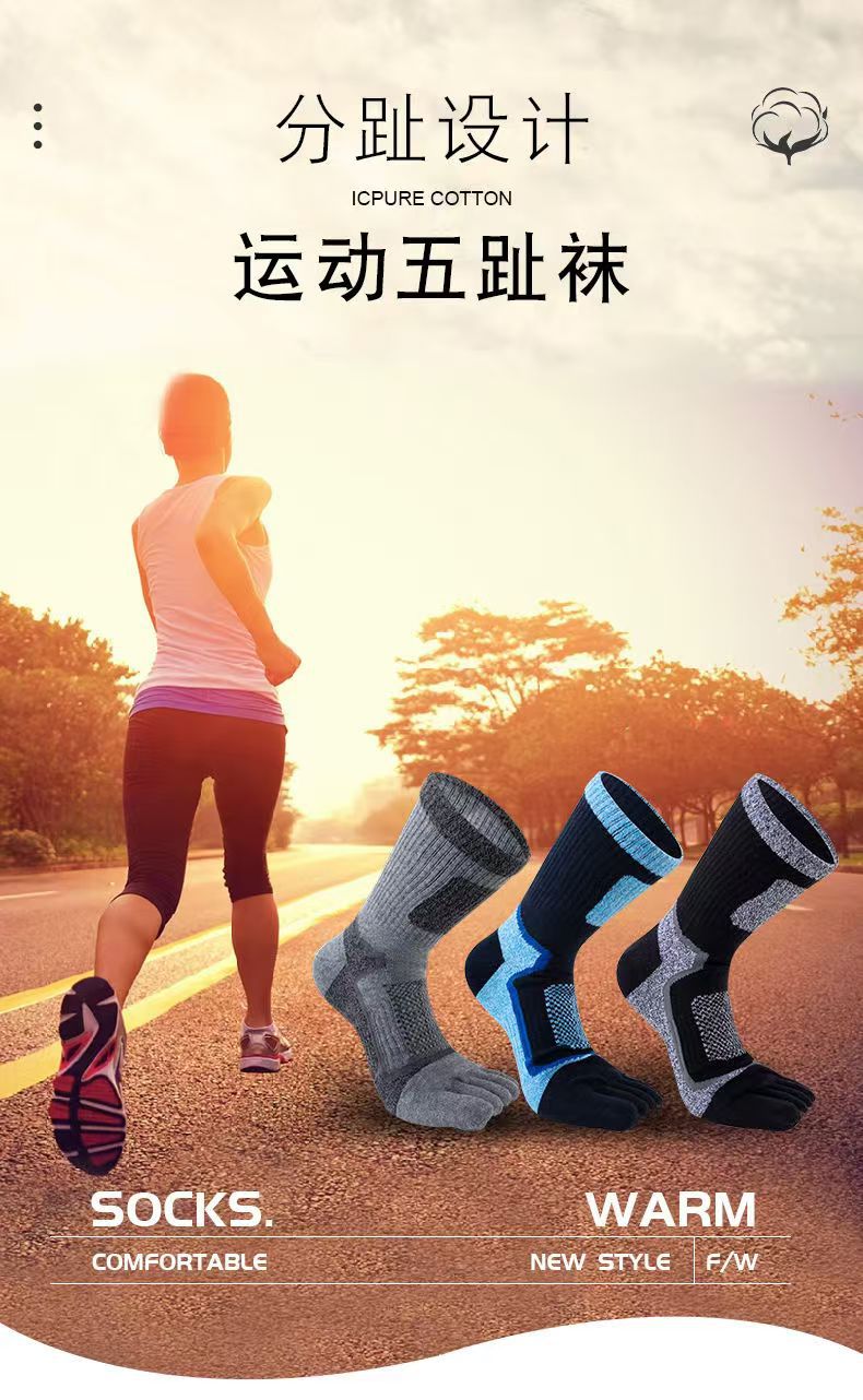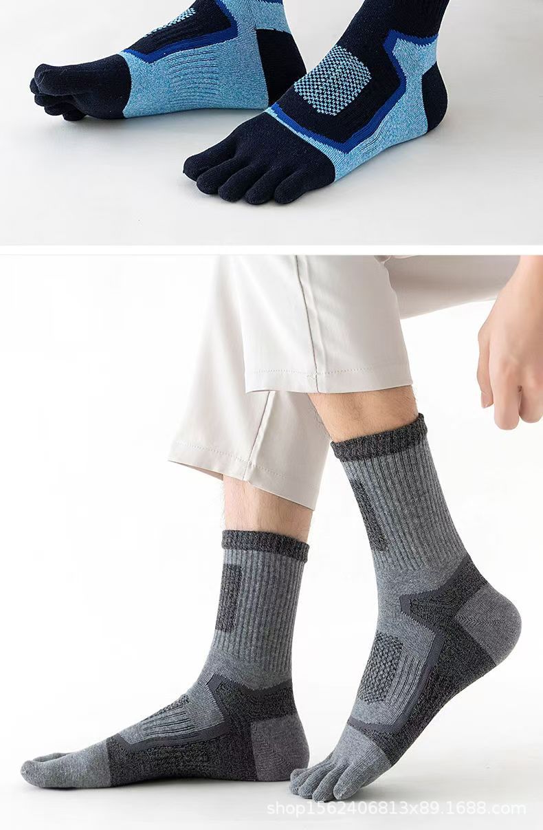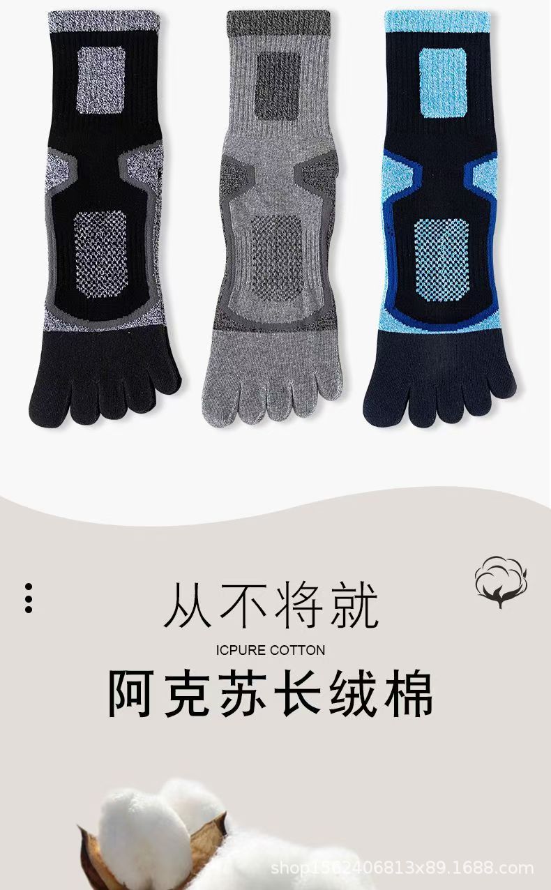 남성용 맞춤형 다섯 손가락 양말, 종아리 중간 순면 스포츠 등산용 발가락 양말, 국경 간 한국 단일 소스 공장스토어 가기
