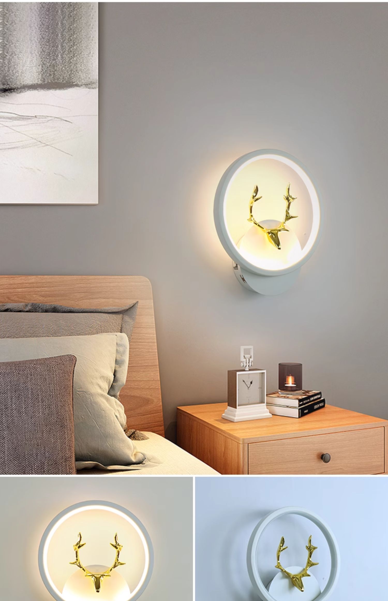 • D102 흰색 원형 벽 조명 LED 3색 조명