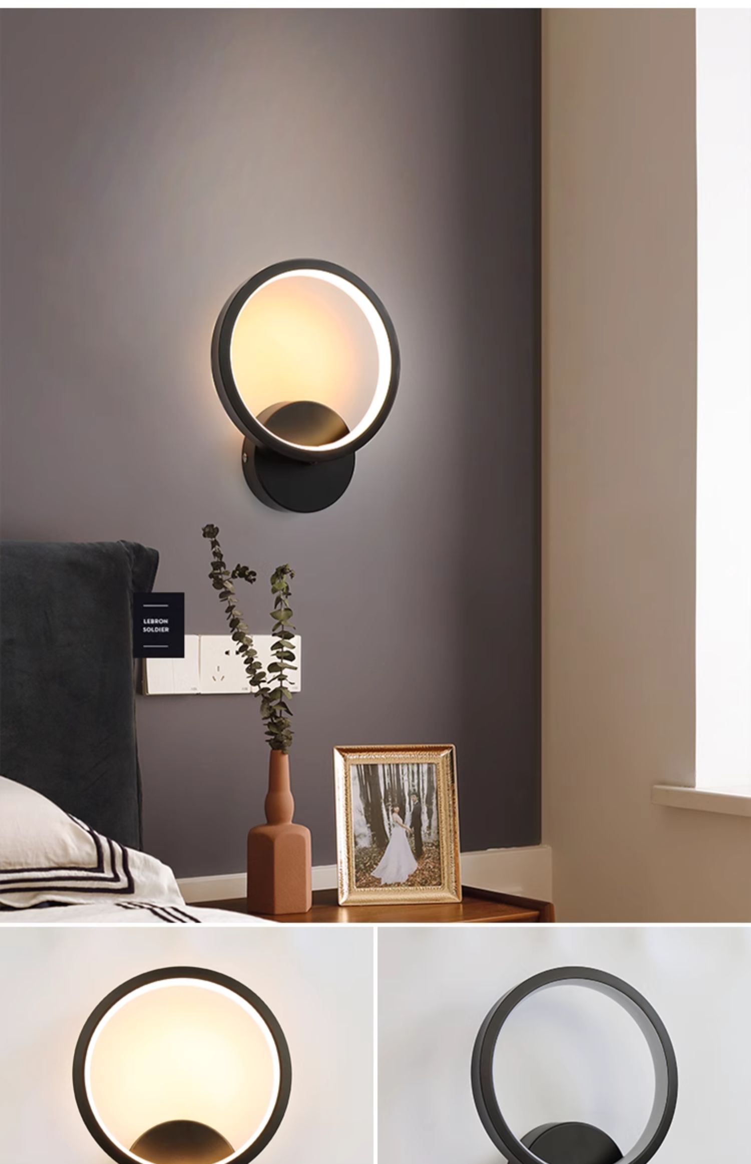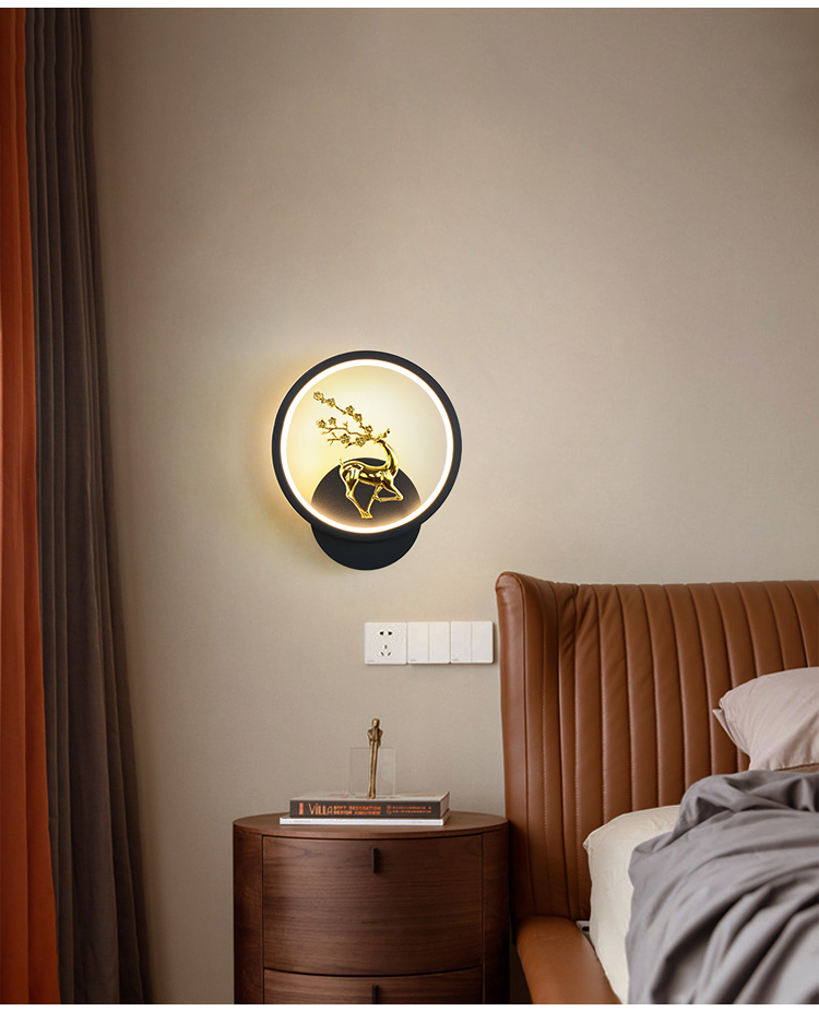 • D102 검정색 원형 벽 조명 LED 따뜻한 조명