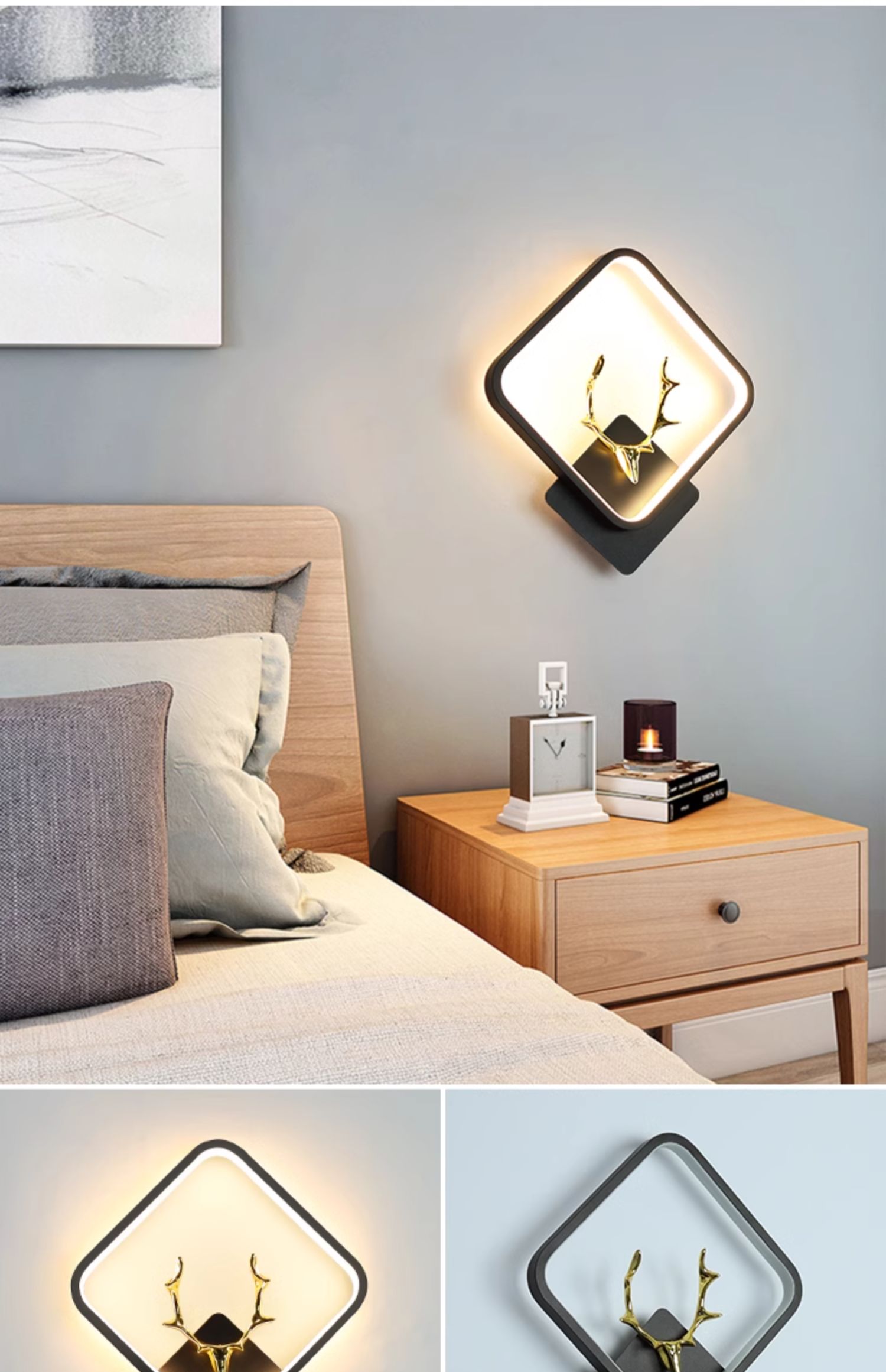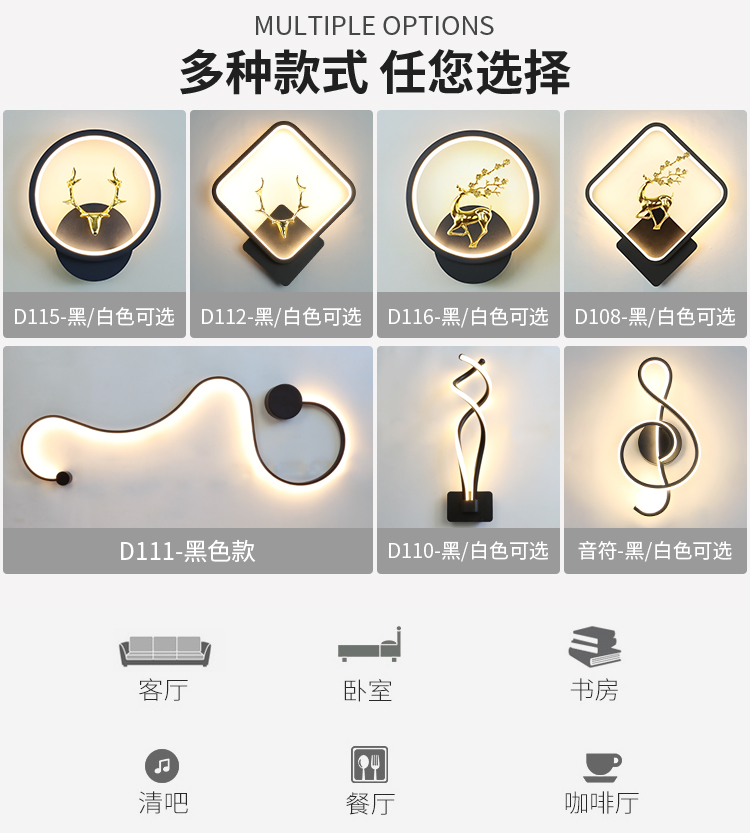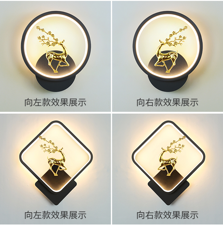 • D108 검은색 사각 사슴 스타일 왼쪽 1개, 오른쪽 1개(쌍) 3색 조명