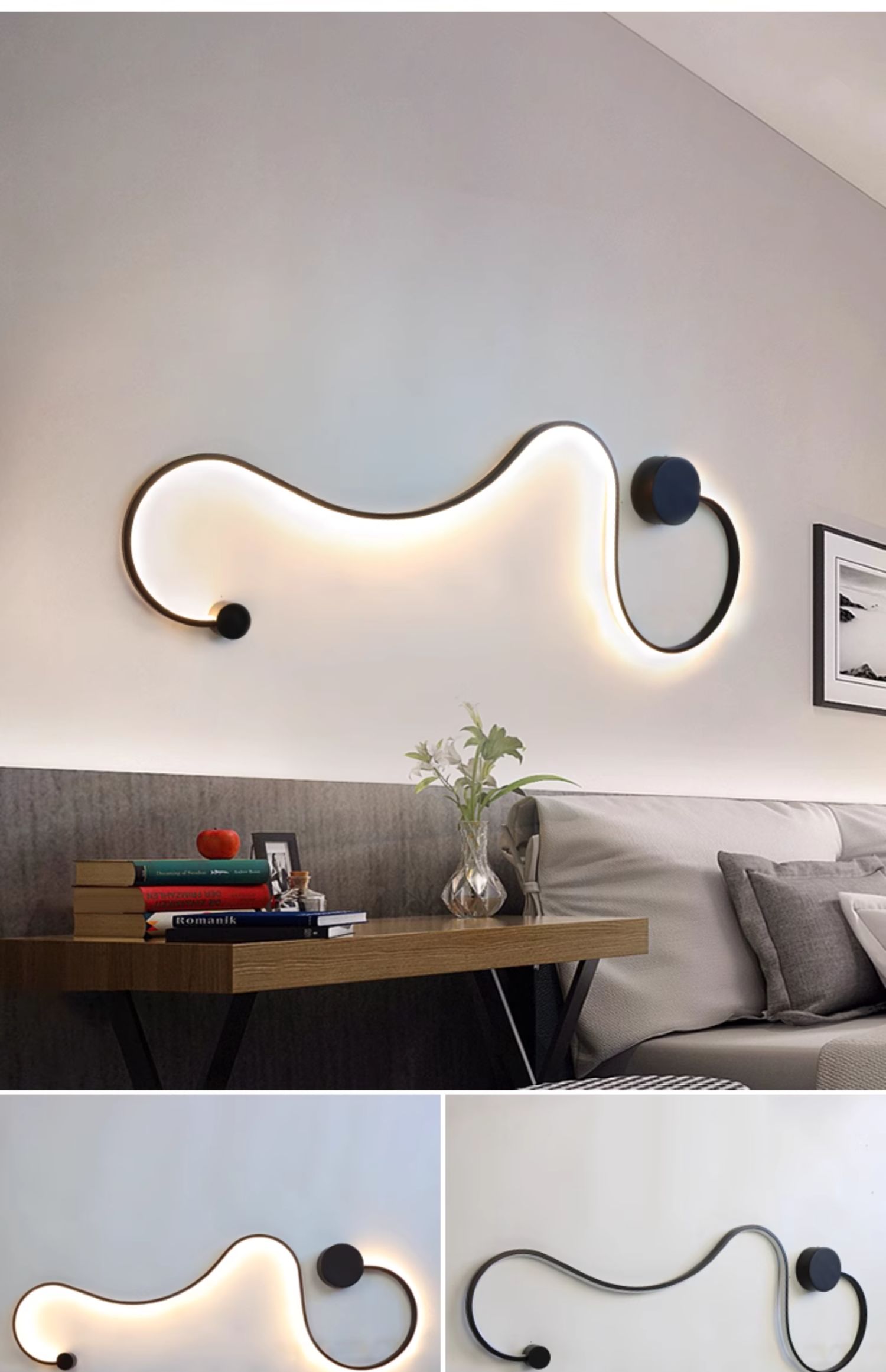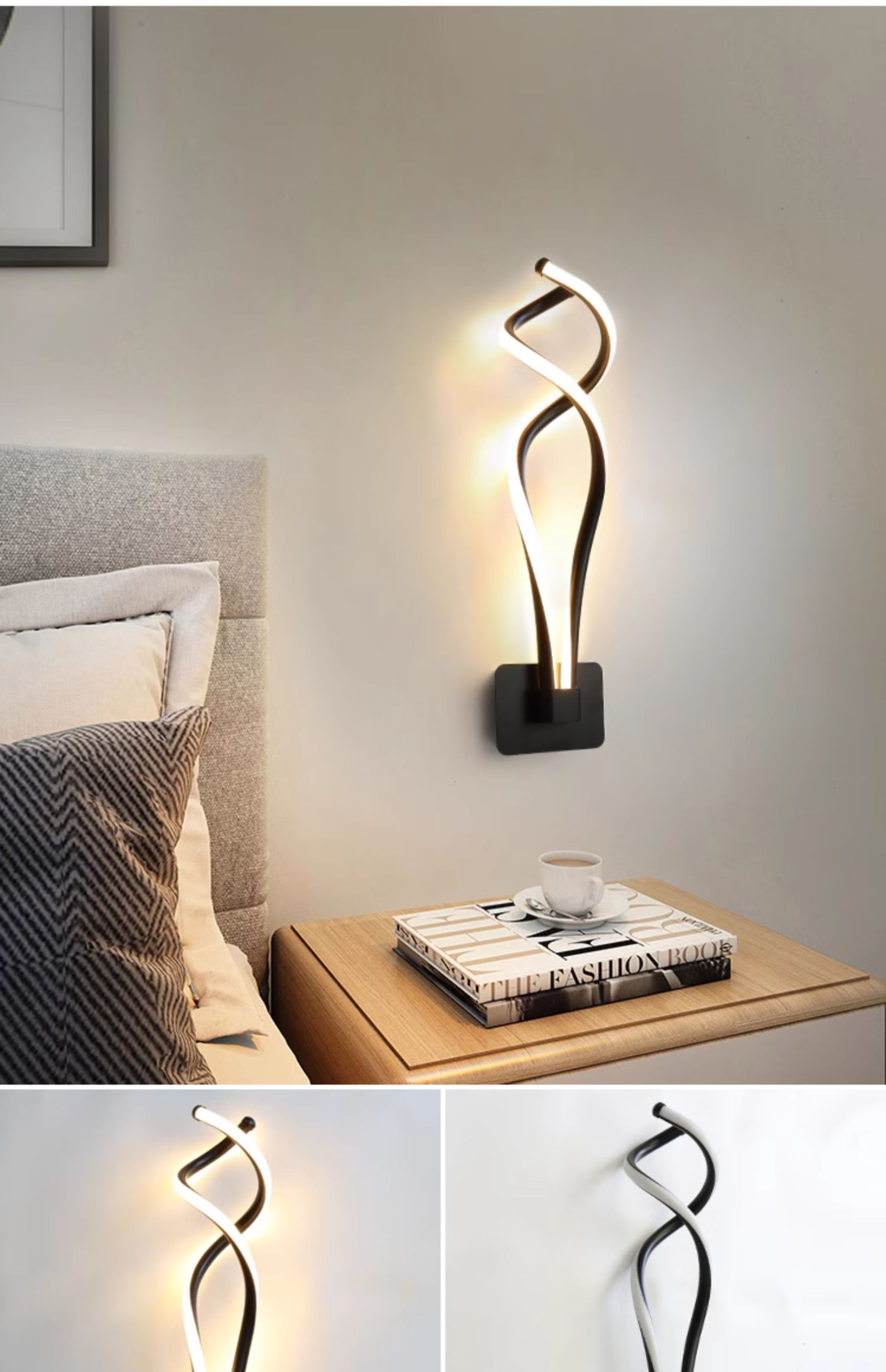 • D139 검정색 C자형 벽 조명 LED 3색 조명