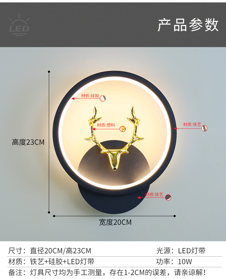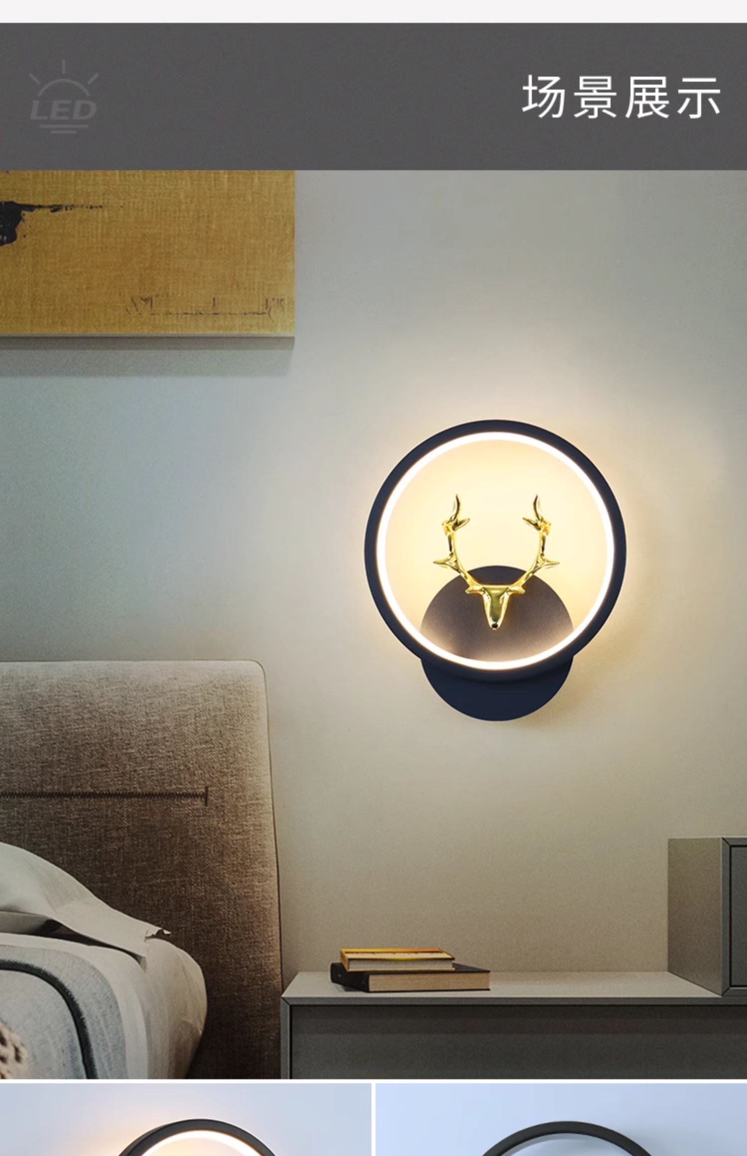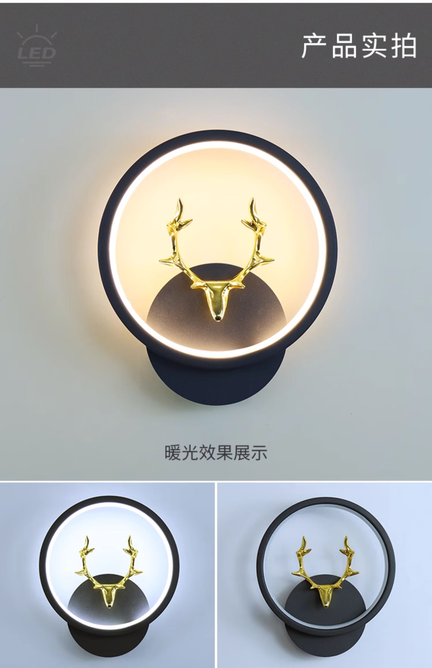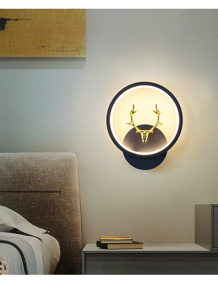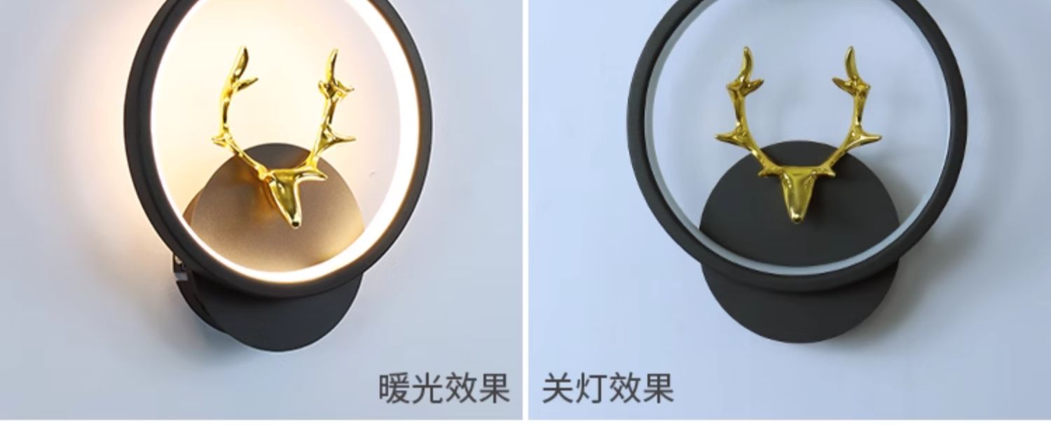 • D116 검은색 둥근 사슴 스타일 왼쪽 1개, 오른쪽 1개(쌍) 3색 조명