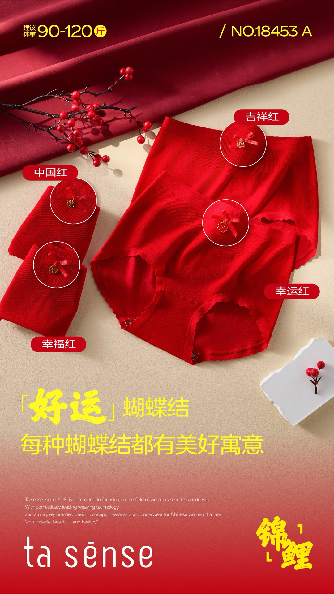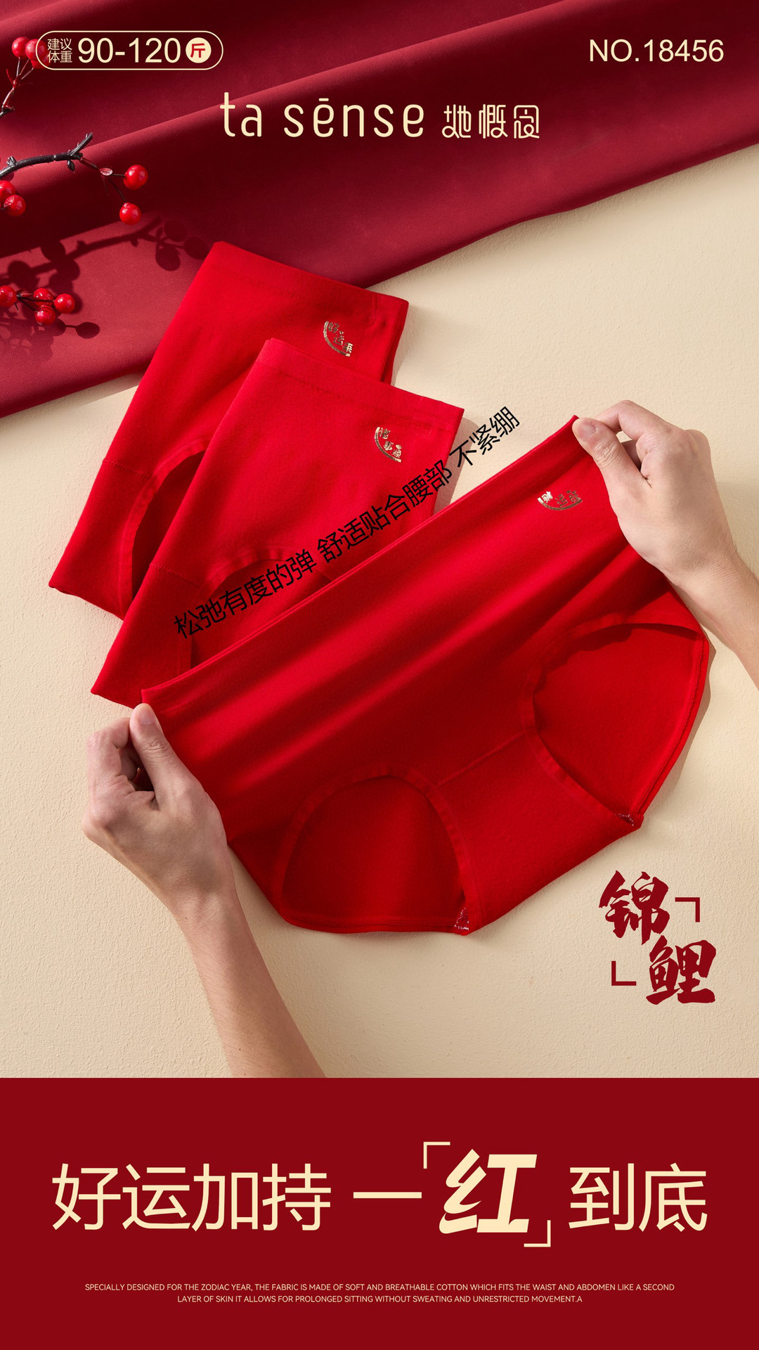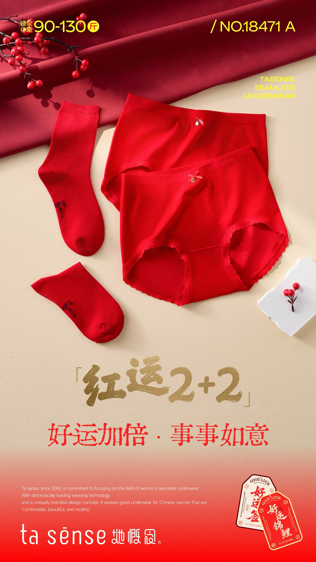 • 18471【추천 45-65kg 】빨간색 속옷 2켤레 + 양말 2켤레