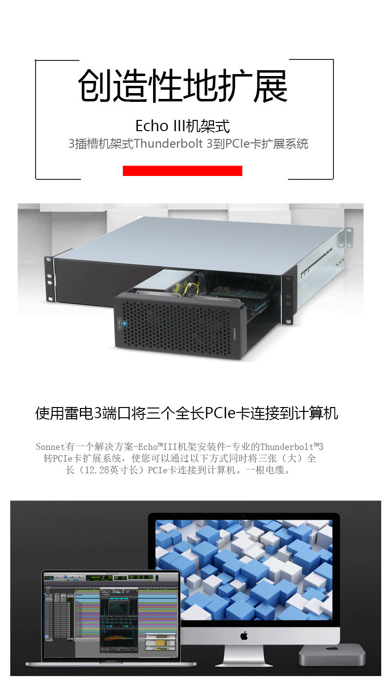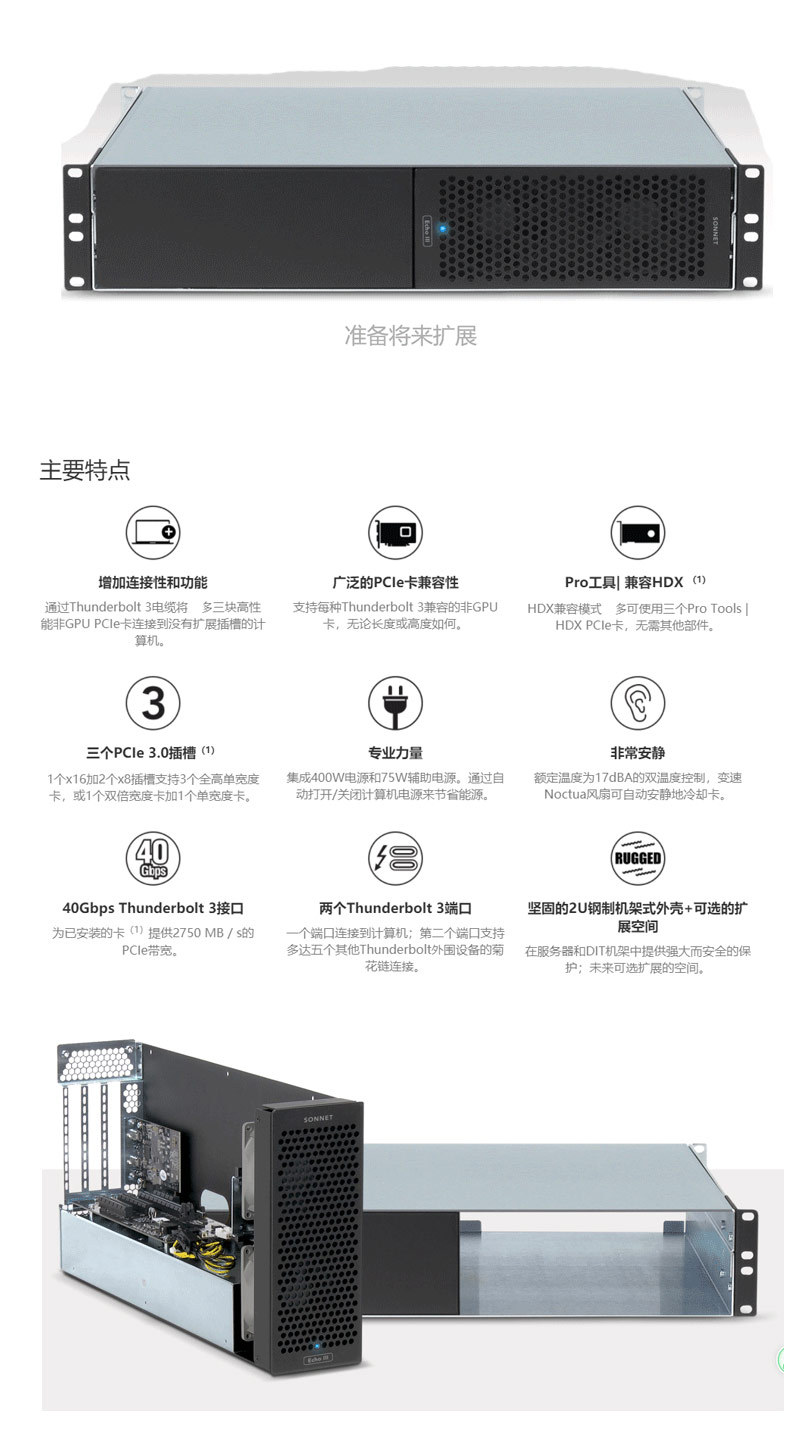 Sonnet Echo 3슬롯 랙 장착형 확장 박스는 GPU가 아닌 PCIE 확장 카드 3개를 지원합니다.스토어 가기