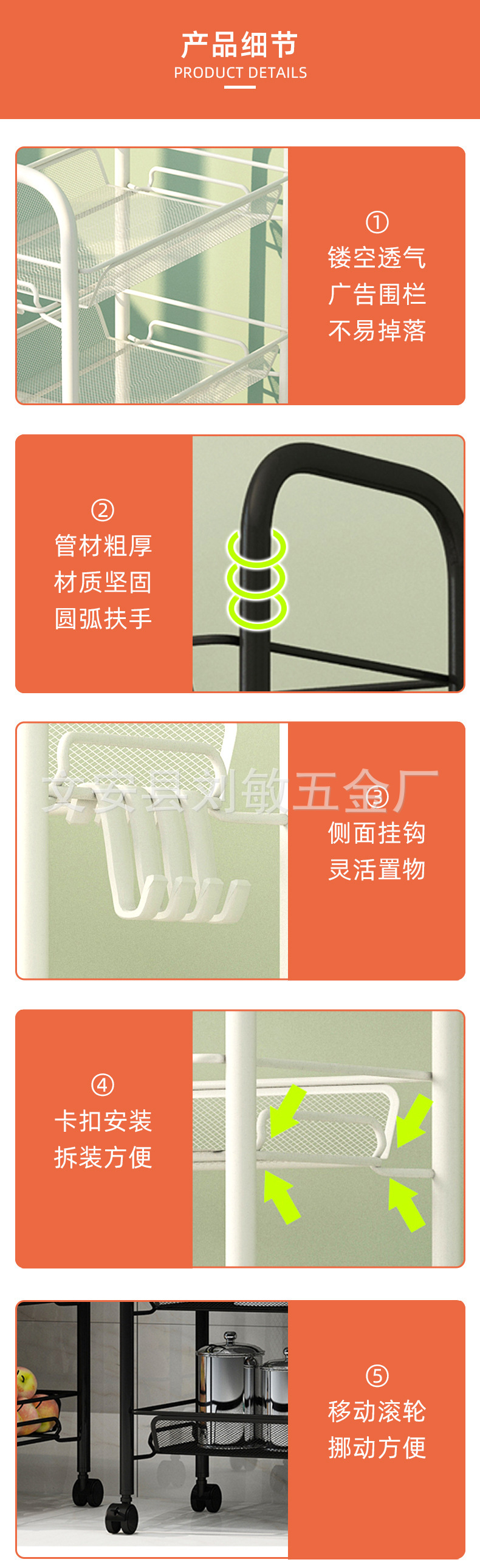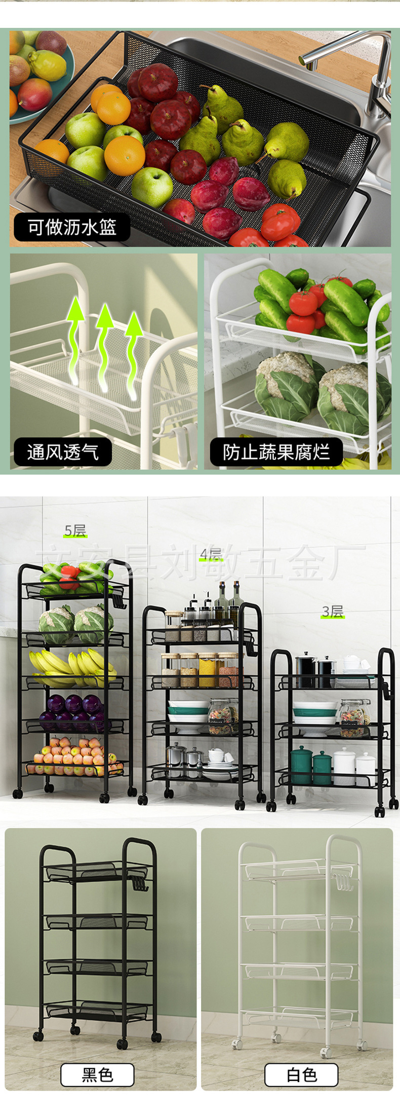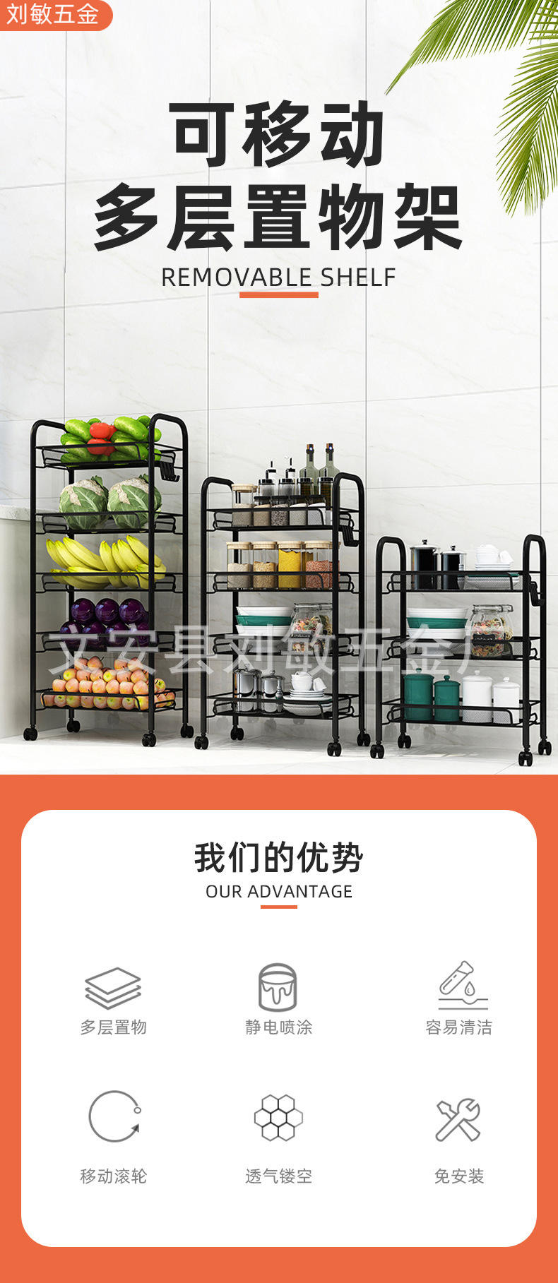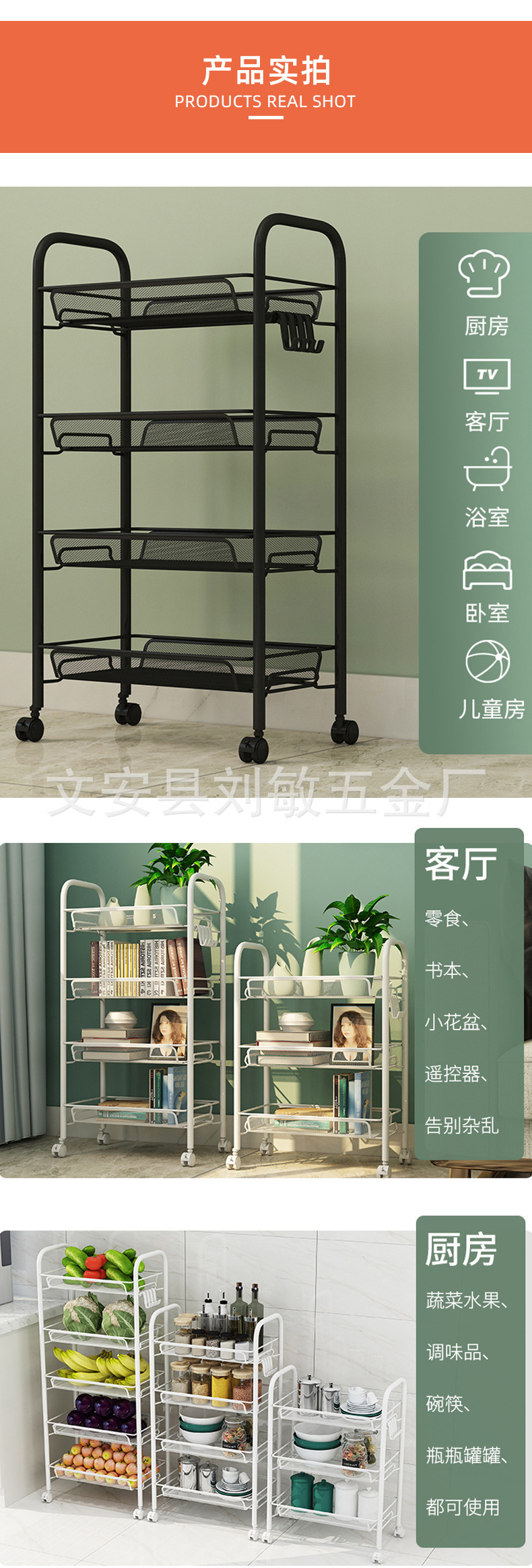 보관 트롤리 바닥 장착형 가정용 이동식 다층 주방 보관 랙 트롤리 거실 다층 보관 랙