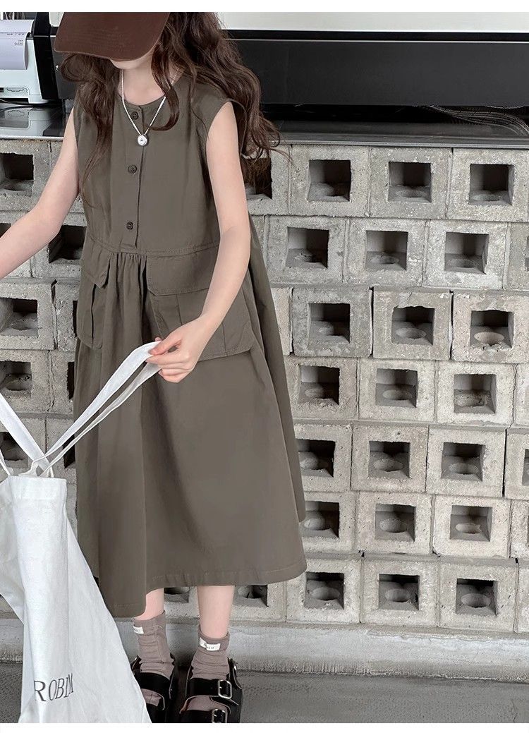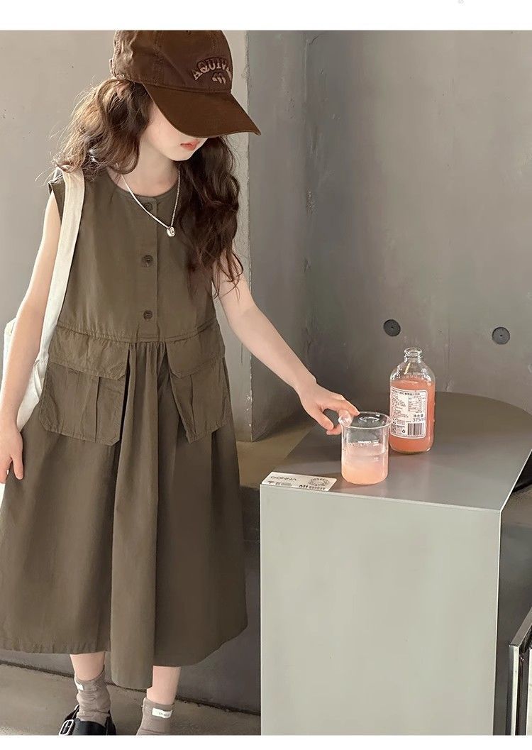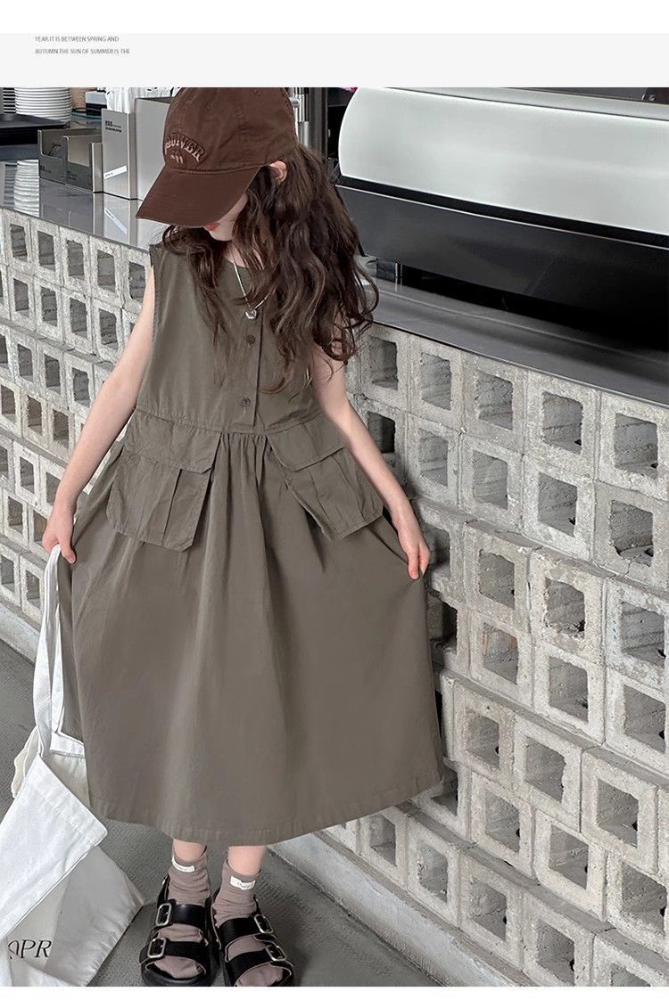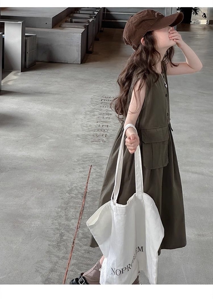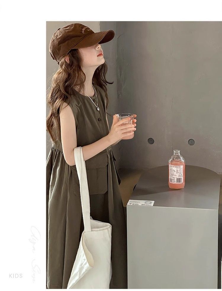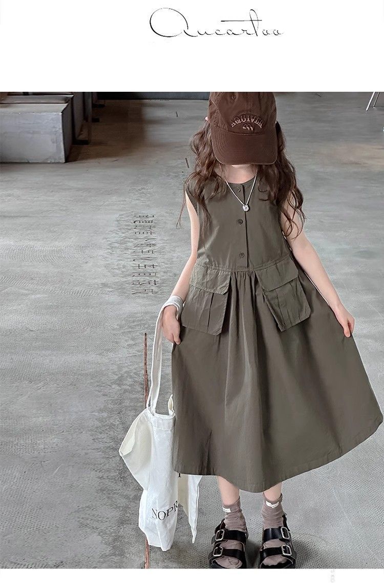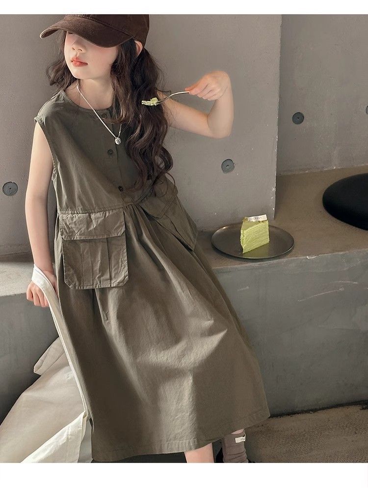 여아 여름 다용도 원피스, 캐주얼 민소매 조끼 원피스, 여아 중대형 아동용 스타일리쉬 작업복 원피스, 여름 패셔너블