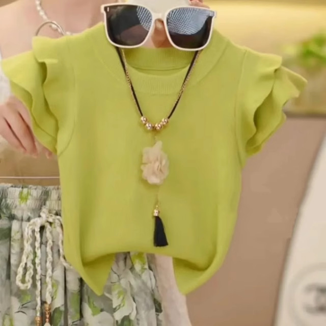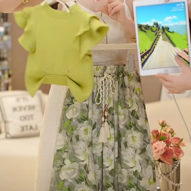 여자 여름 정장 2025 새로운 스타일 어린이 반팔 티셔츠 여름 여자 꽃 무늬 넓은 다리 바지 투피스 세트스토어 가기
