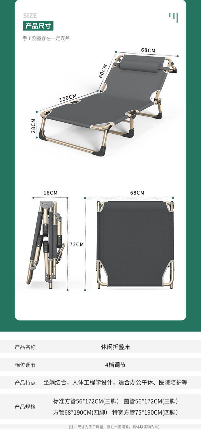 접이식 침대, 1인용 점심시간, 사무실 낮잠 동반자, 휴대용, 게으른 사람들을 위한 간단한 이중 목적 안락 의자, 국경 간 공장 도매스토어 가기