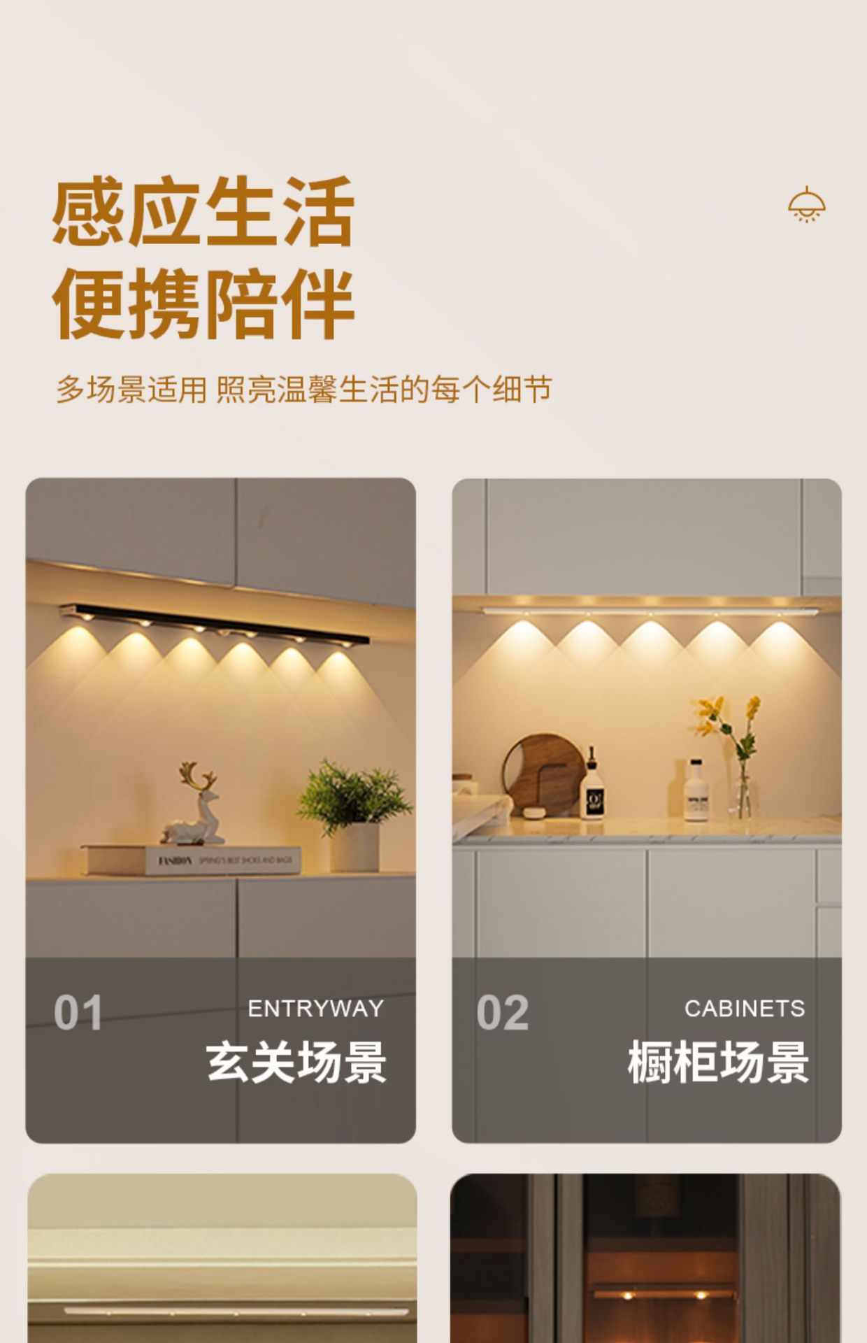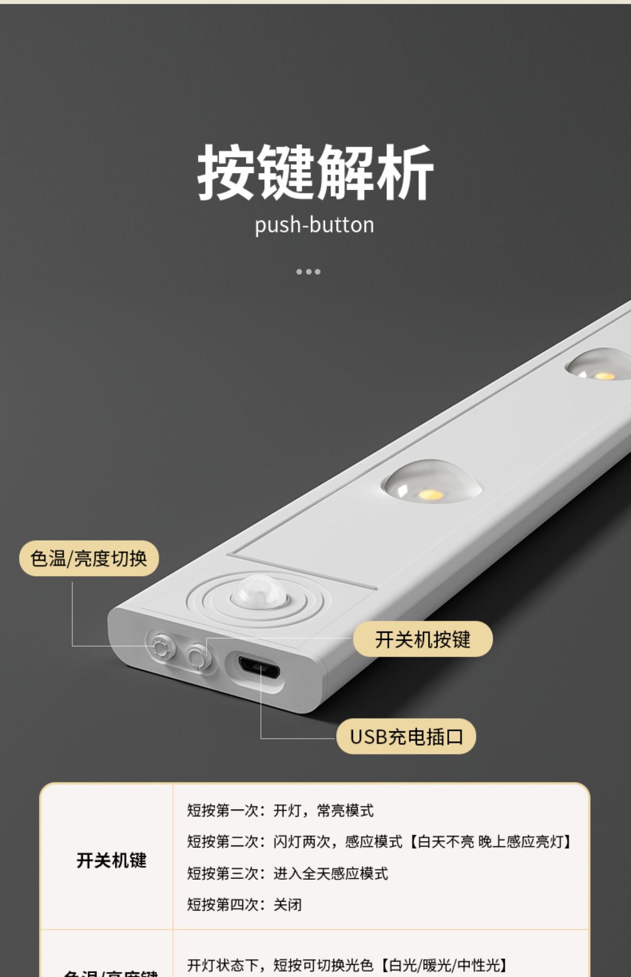 • 초박형 흰색 50cm [램프 비즈 4개] 3색 디밍 스마트 센서