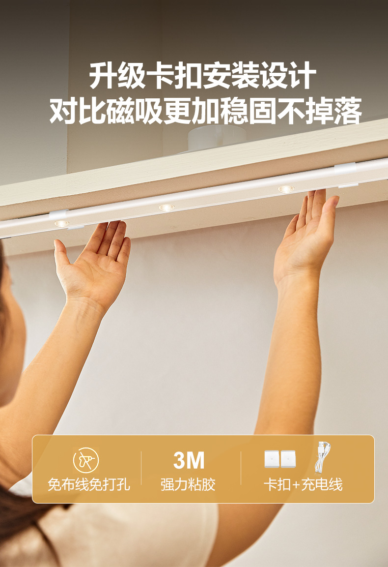 충전식 인체 센서 램프가있는 LED 캐비닛 램프 무선 옷장 와인 캐비닛 고양이 눈 램프 신발 캐비닛 자체 접착 센서 라이트 스트립스토어 가기
