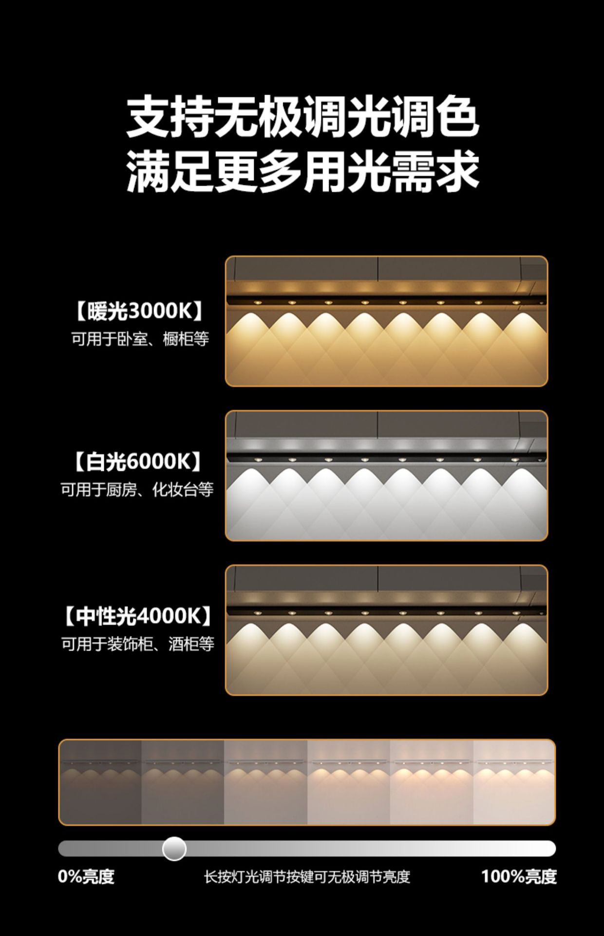 • 초박형 흰색 100cm [8개의 램프 비즈] 3색 디밍 스마트 센서