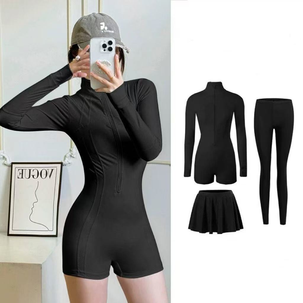 새로운 여성의 슬림 피트 보정 복서 수영복 3 피스 수영 야외 스포츠 속건성 자외선 차단제 원피스 잠수복