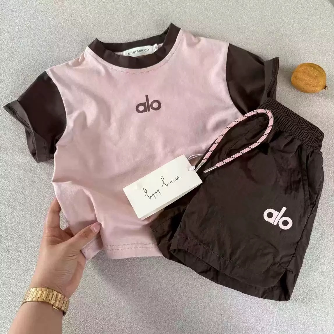 2025 새로운 여름 어린이 반팔 소년 대비 색상 투피스 세트 아기 반팔 운동복 소녀 반팔 티셔츠스토어 가기