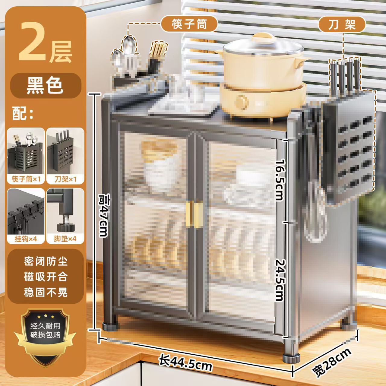 • 블랙 - 길이 44CM - 더블 레이어 찬장 액세서리 전체 세트