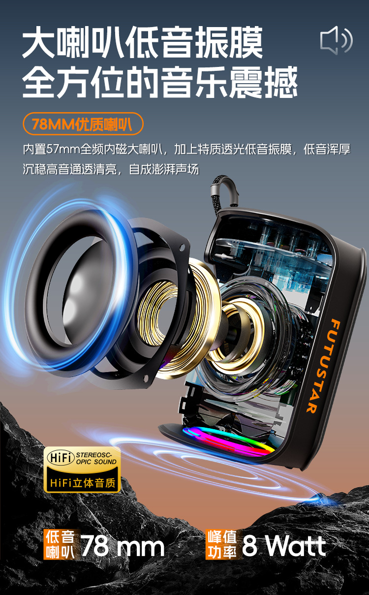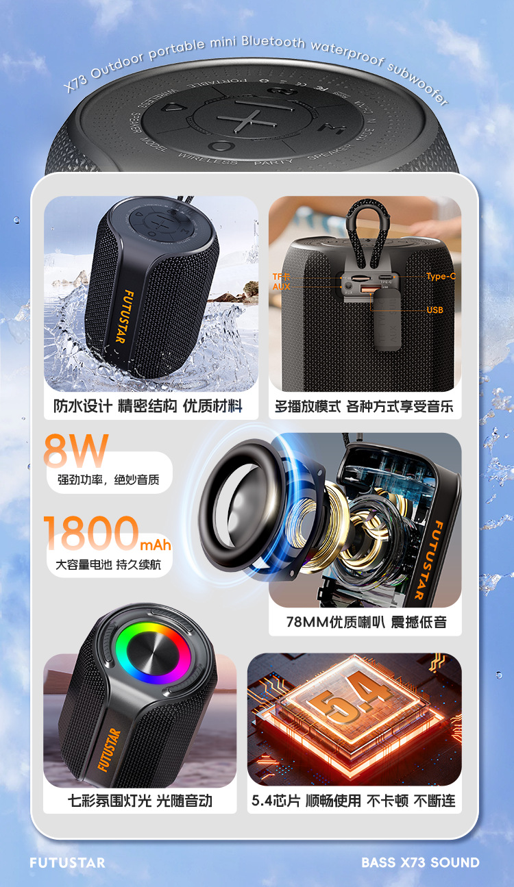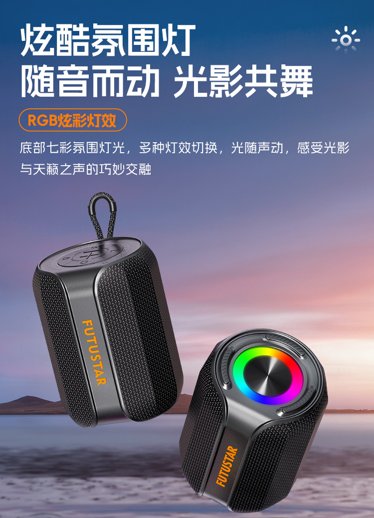 FUTUSTAR/X73 블루투스 스피커 야외 라이딩 휴대용 화려한 조명 서브우퍼 대용량 크로스보더스토어 가기