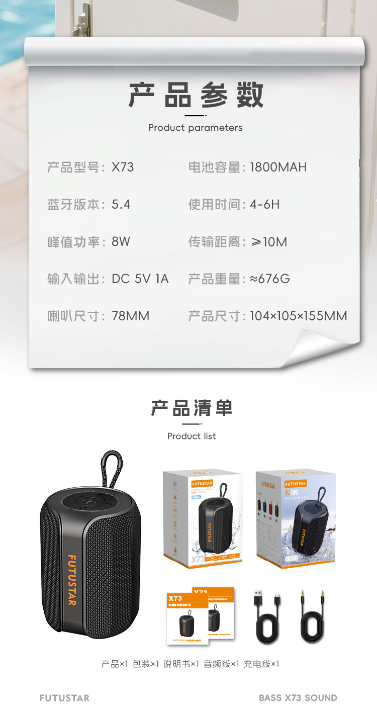 FUTUSTAR/X73 블루투스 스피커 야외 라이딩 휴대용 화려한 조명 서브우퍼 대용량 크로스보더
