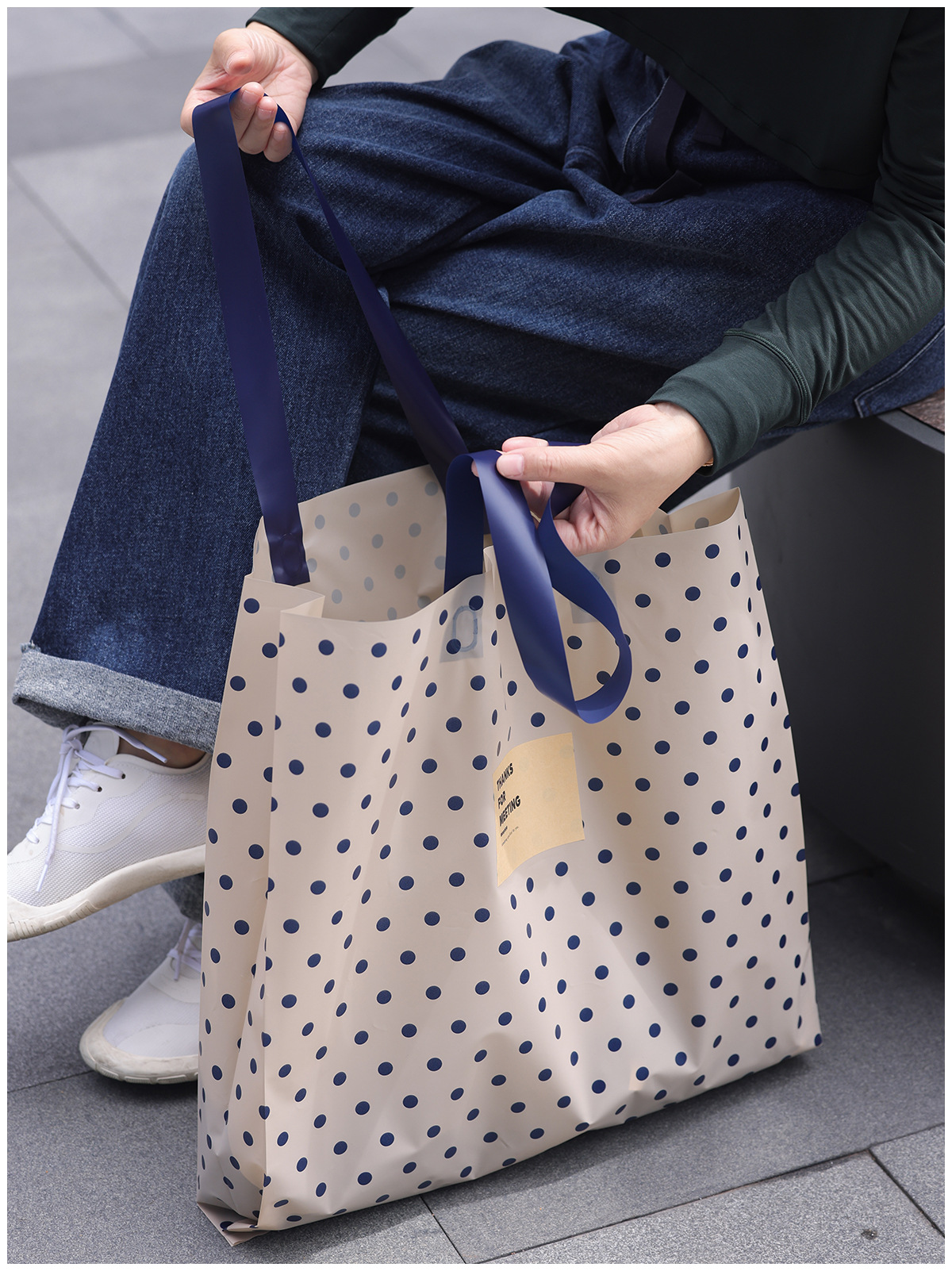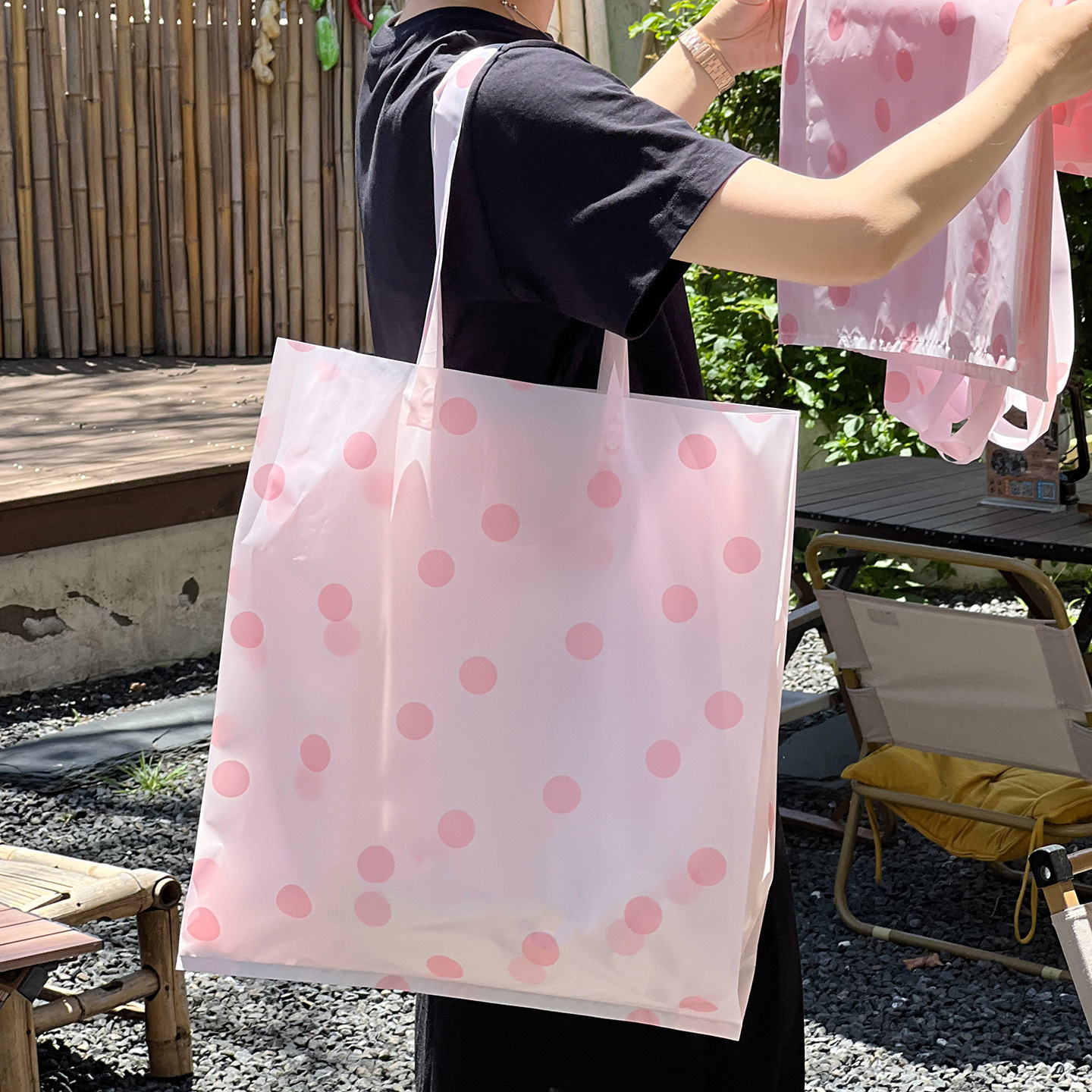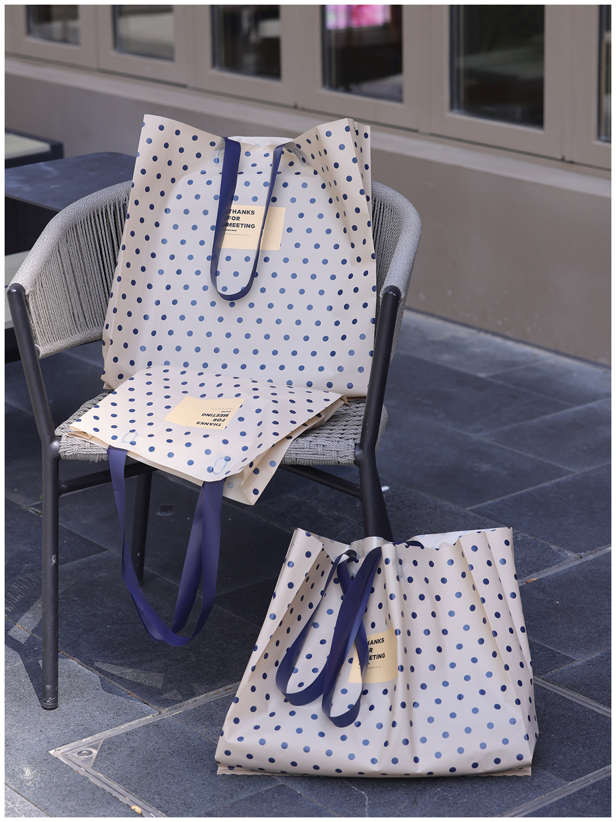 아마 폴카 도트 고급 젖빛 비닐 봉투 의류 매장 핸드백 선물 가방 맞춤 스티커 로고 스팟 배치스토어 가기