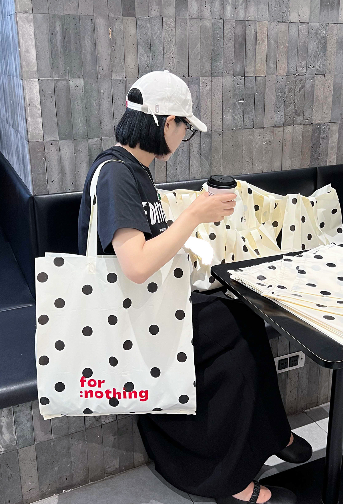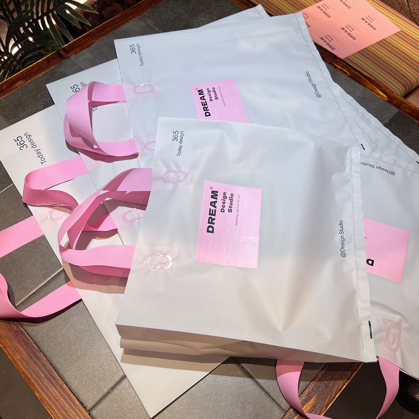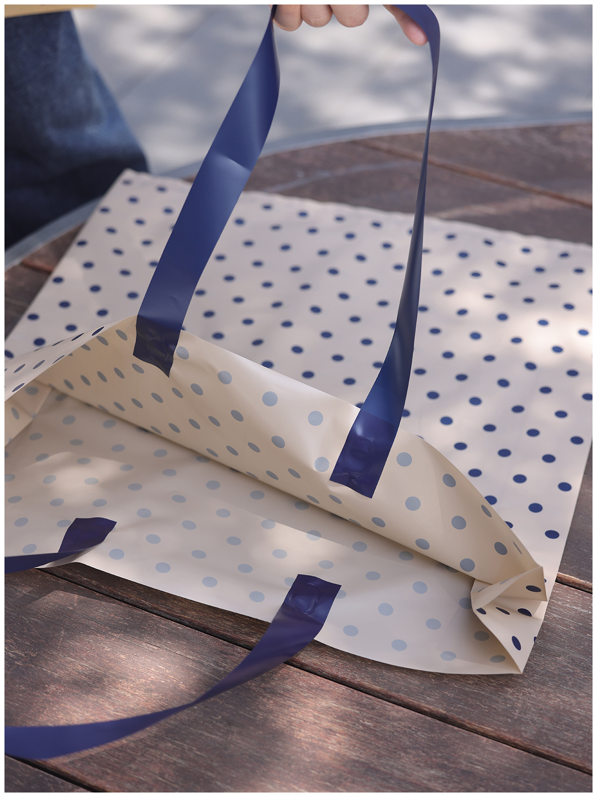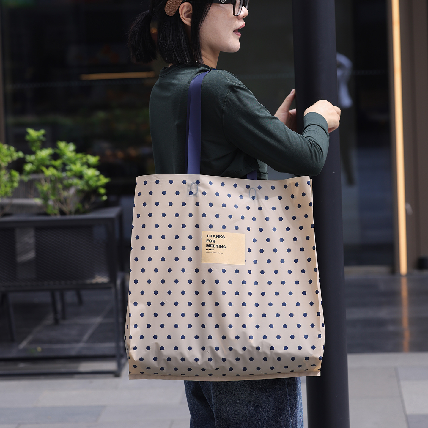 아마 폴카 도트 고급 젖빛 비닐 봉투 의류 매장 핸드백 선물 가방 맞춤 스티커 로고 스팟 배치스토어 가기