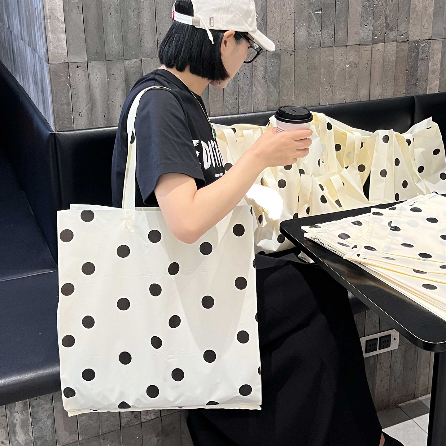 • 베이지색 대형 도트무늬 - 일반 짧은 핸드백, 특대형 45*50+접이식 10CM
