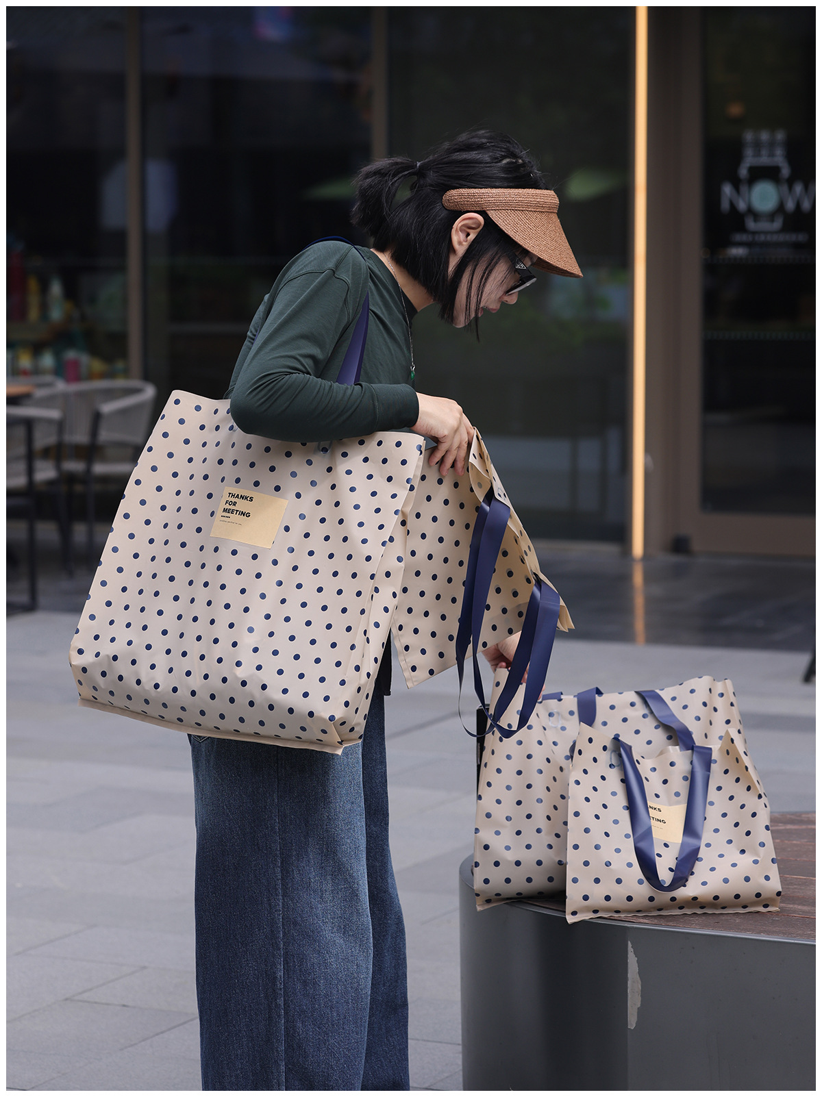 • 베이지색 대형 도트무늬 - 긴 손잡이와 어깨끈, 대형 너비 45*40+단단단단 10CM