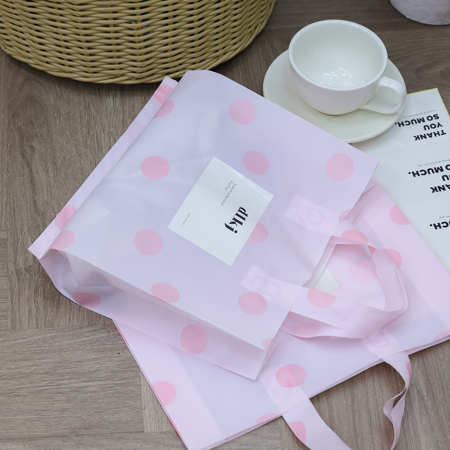 아마 폴카 도트 고급 젖빛 비닐 봉투 의류 매장 핸드백 선물 가방 맞춤 스티커 로고 스팟 배치