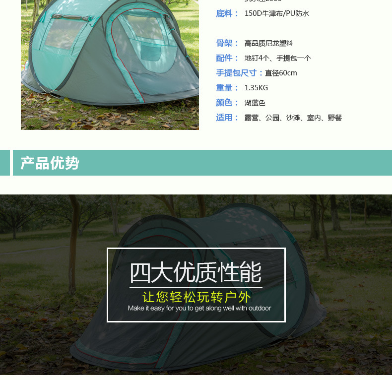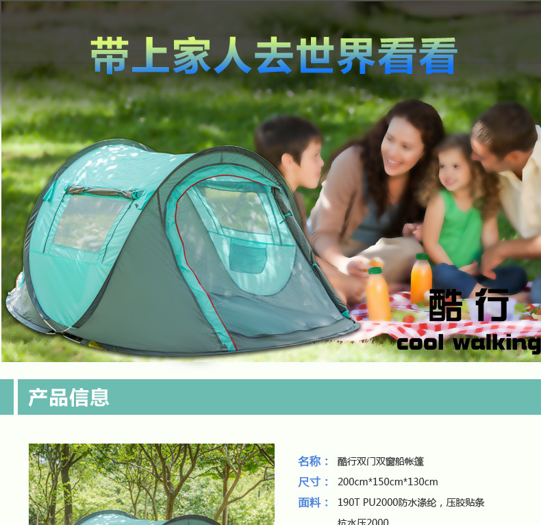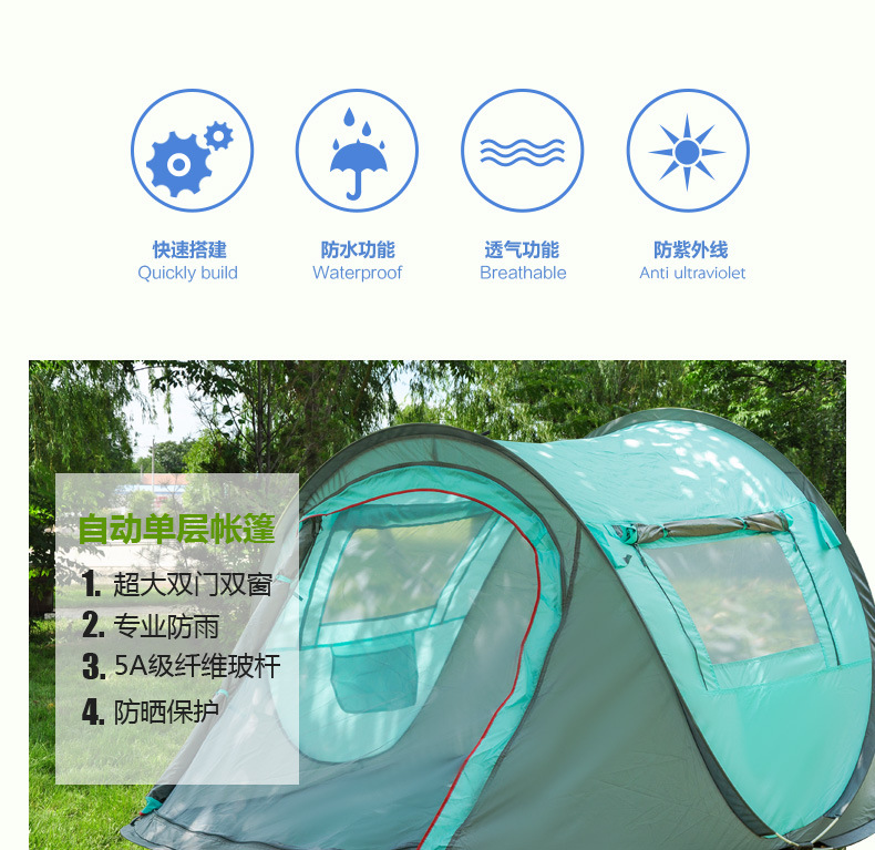 3~4인용 맞춤형 완전 자동 보트 텐트, 야외 캠핑 및 레저용 단층 텐트, 가족 캠핑, 빠르게 열리는 해변 텐트