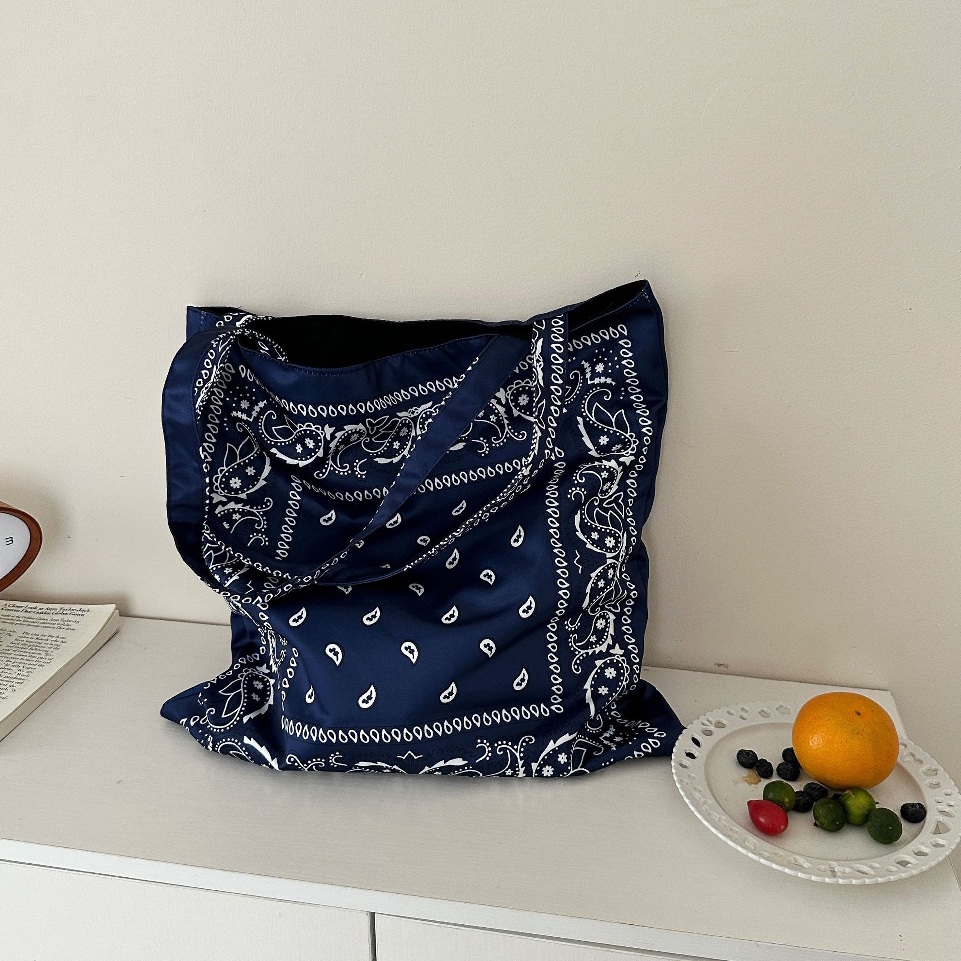 2025 여름 신제품 빅 레드 캐슈 플라워 캔버스 백 에스닉 스타일 다용도 대용량 겨드랑이 숄더 토트 백스토어 가기
