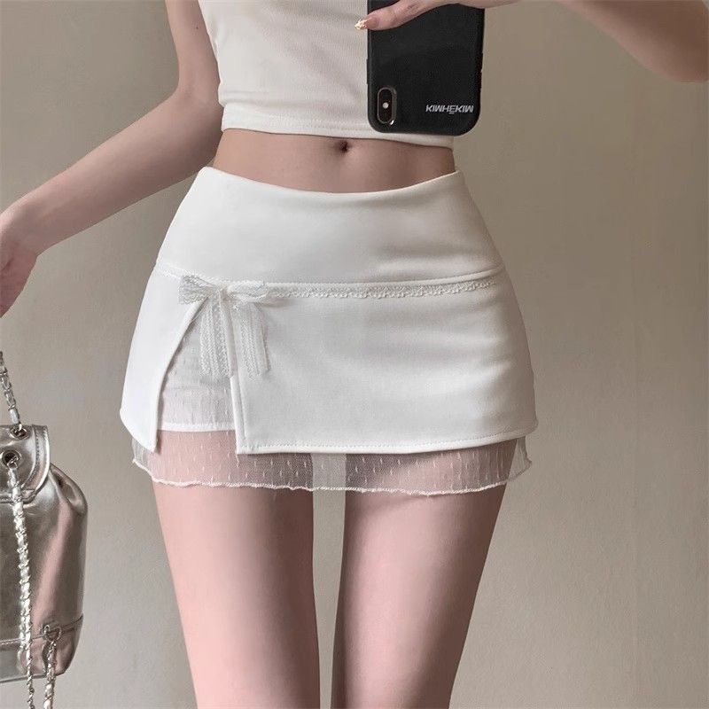 여름 여성용 페이크 투피스 레이스 스커트, 하이웨이스트 슬리밍 핫걸 힙 스커트, 불규칙 슬릿 A라인 숏 스커트스토어 가기