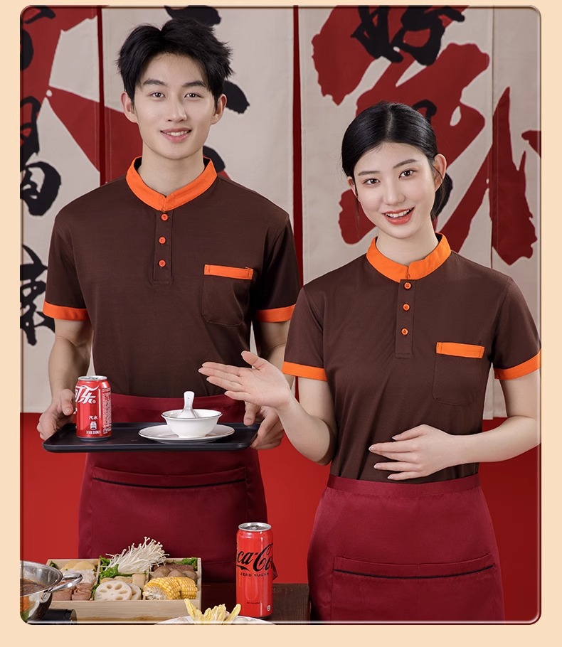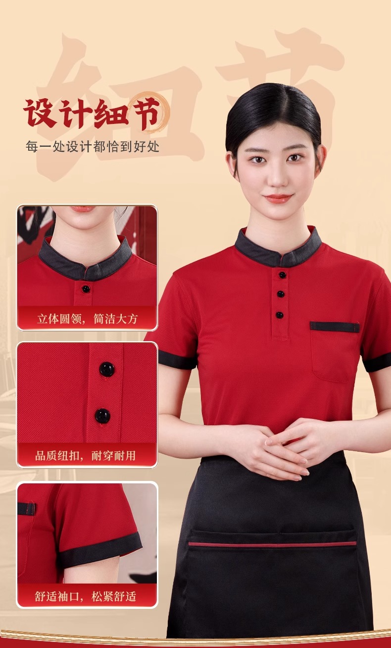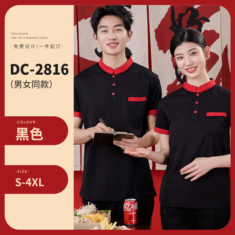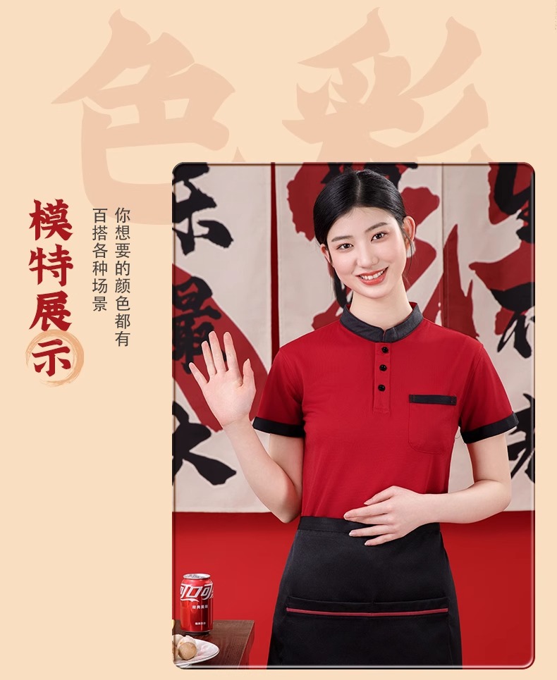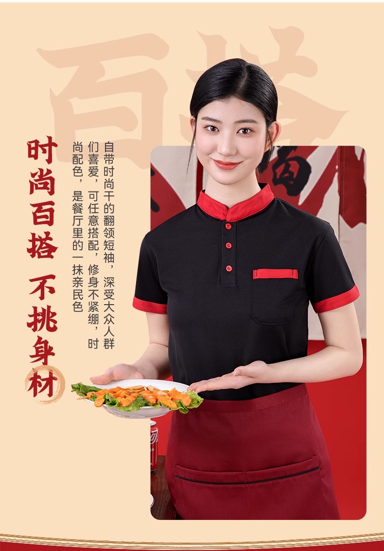 스탠드 칼라 케이터링 작업복 반팔 훠궈 바베큐 밀크티 레스토랑 패스트푸드점 서비스 직원 유니폼 티셔츠 여성용 폴로스토어 가기