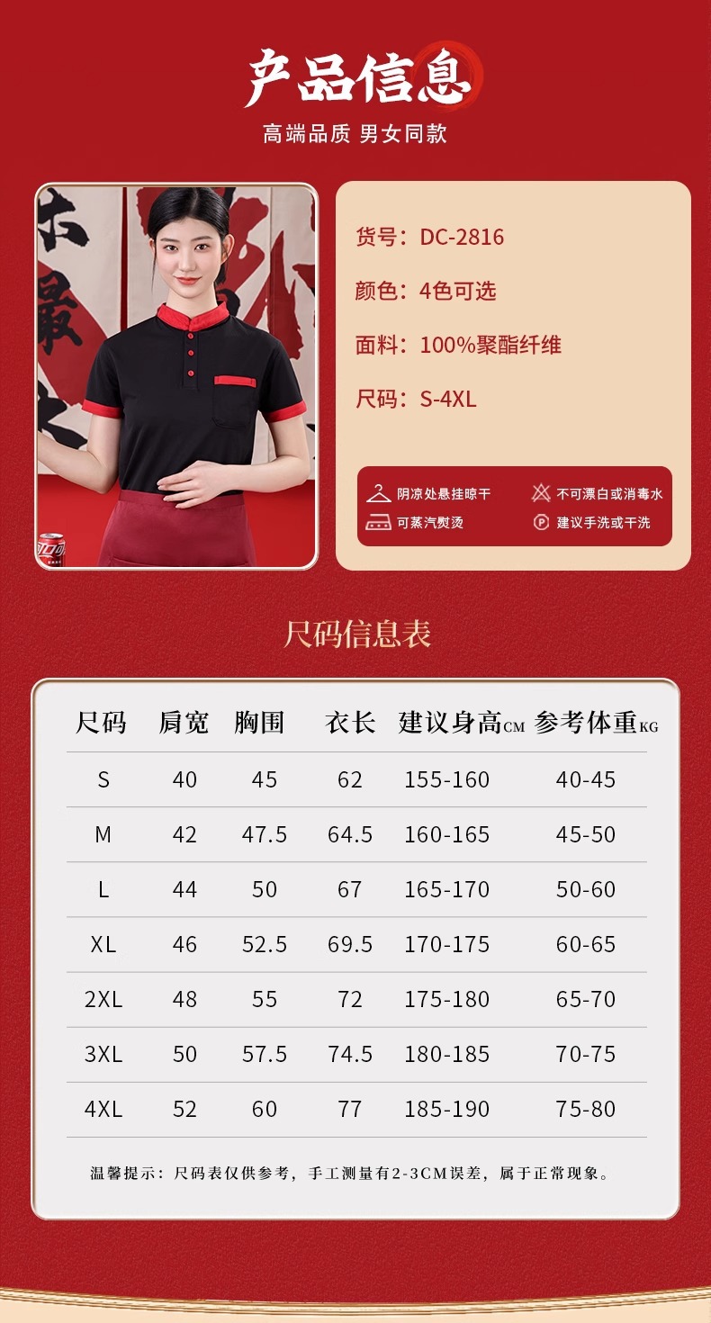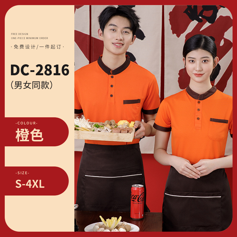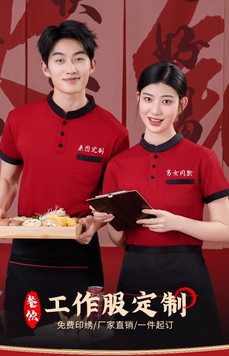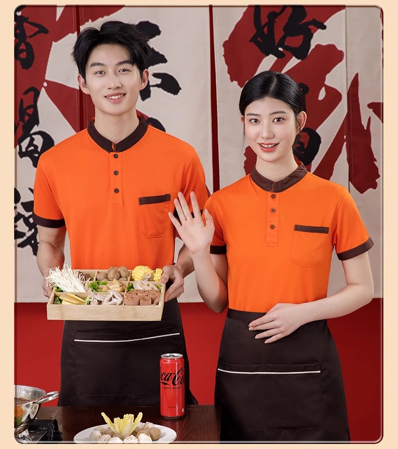 스탠드 칼라 케이터링 작업복 반팔 훠궈 바베큐 밀크티 레스토랑 패스트푸드점 서비스 직원 유니폼 티셔츠 여성용 폴로스토어 가기