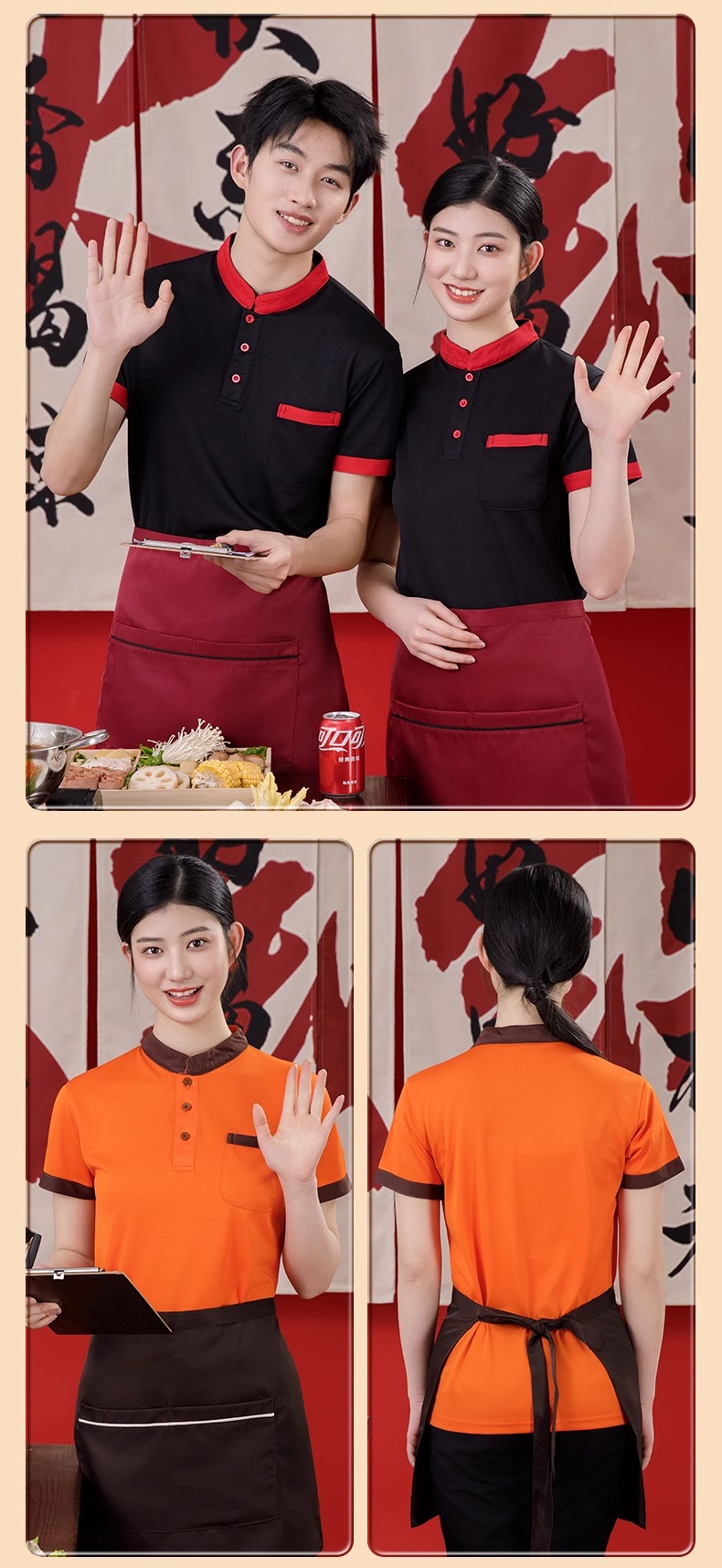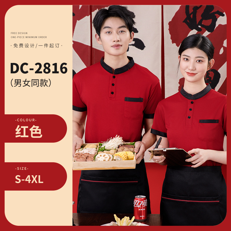 스탠드 칼라 케이터링 작업복 반팔 훠궈 바베큐 밀크티 레스토랑 패스트푸드점 서비스 직원 유니폼 티셔츠 여성용 폴로