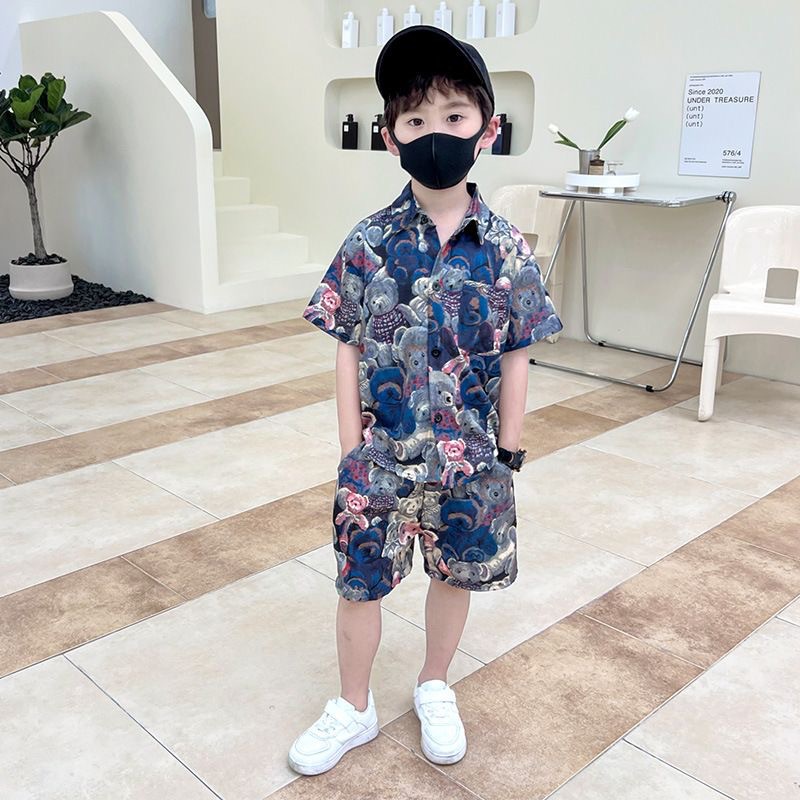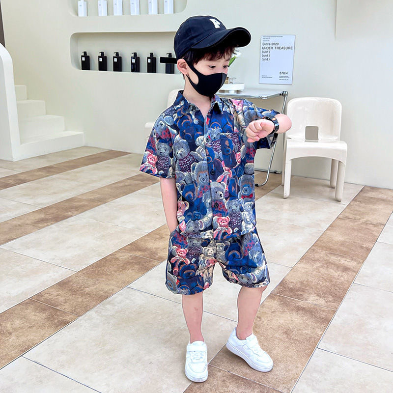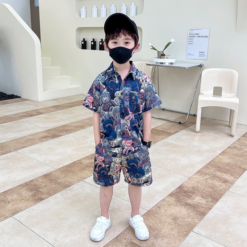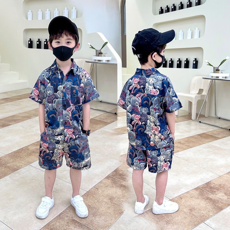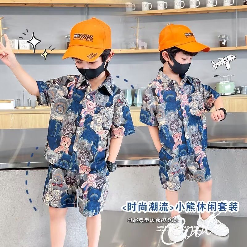 아동 의류 2025 여름 새로운 스타일 어린이 소년 반팔 아기 만화 여름 셔츠 반바지 얇은 양복