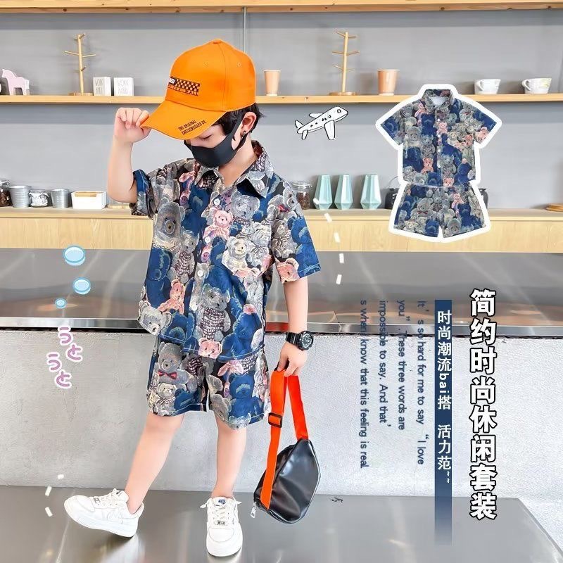 아동 의류 2025 여름 새로운 스타일 어린이 소년 반팔 아기 만화 여름 셔츠 반바지 얇은 양복스토어 가기