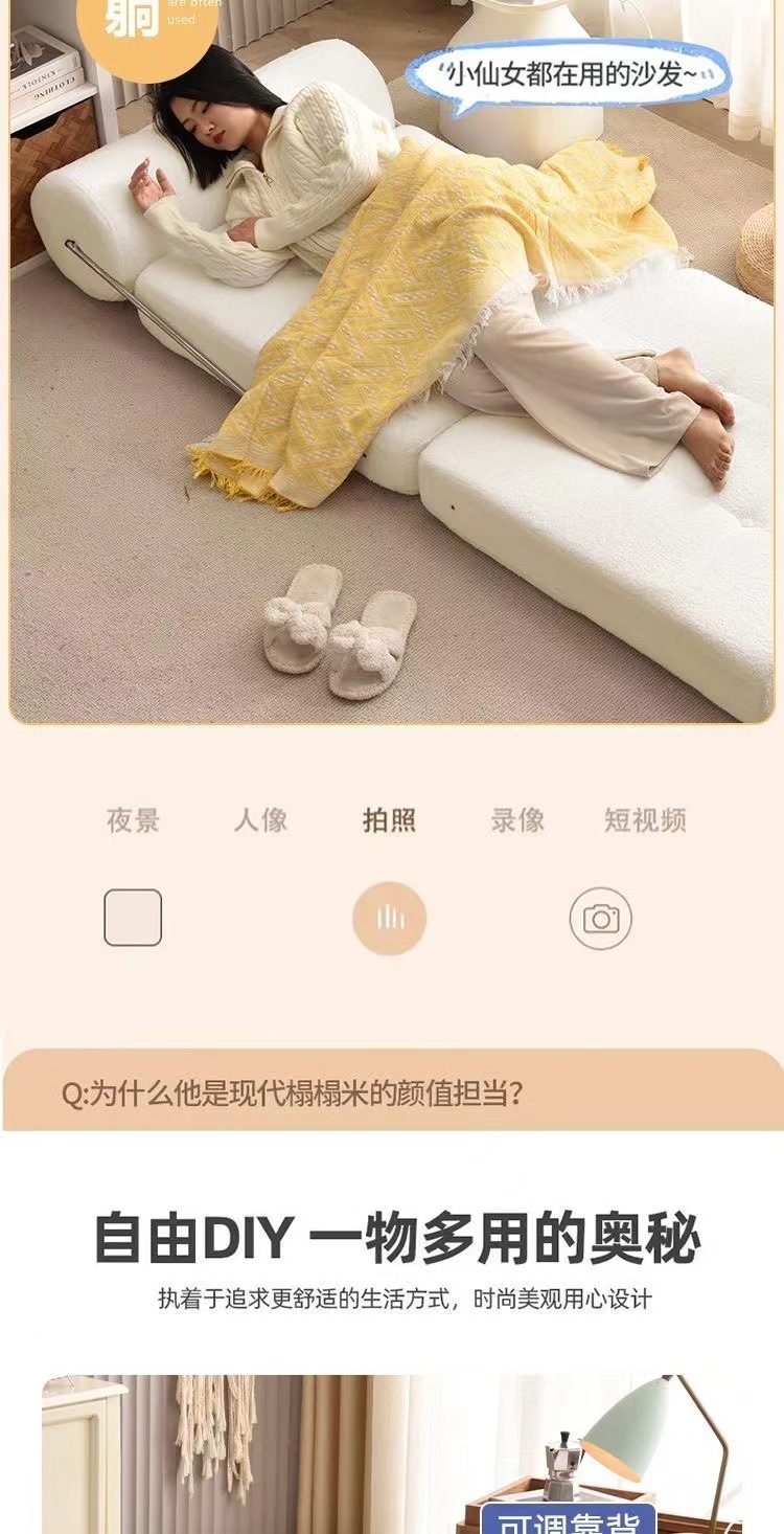 소파 베드 접이식 이중 목적 홈 침실 두부 블록 타지 소파 베드 싱글 게으른 소파는 누워서 앉을 수 있습니다