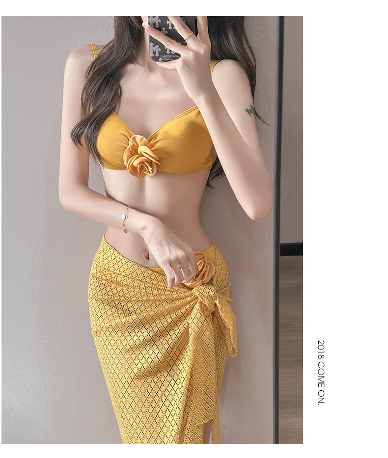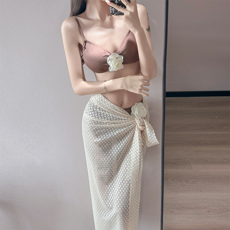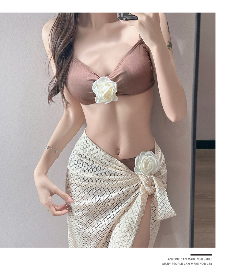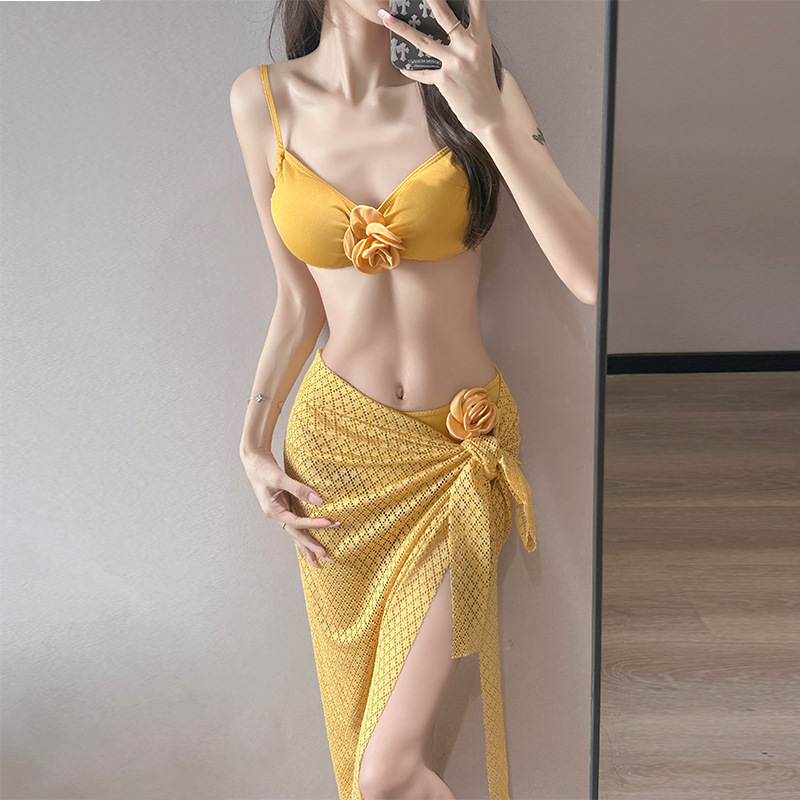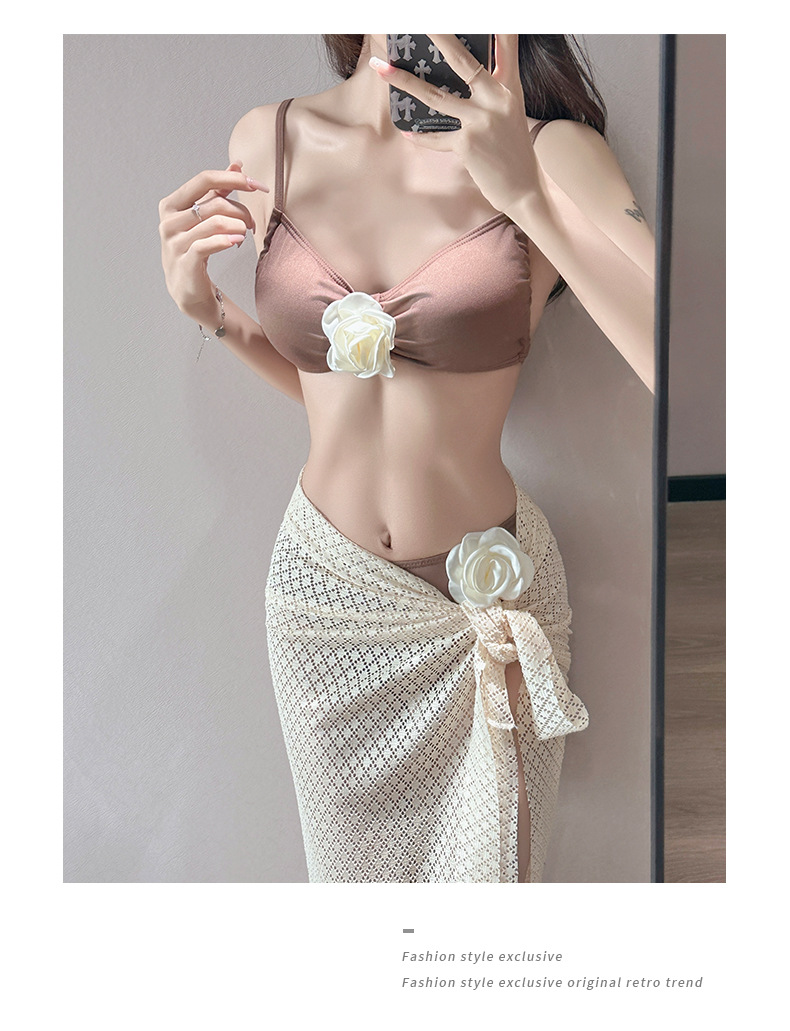 여름 스커트 비키니 3피스 프렌치 솔리드 컬러 기질 입체 장미 아름다운 슈퍼 요정 화이트 비치 온천스토어 가기