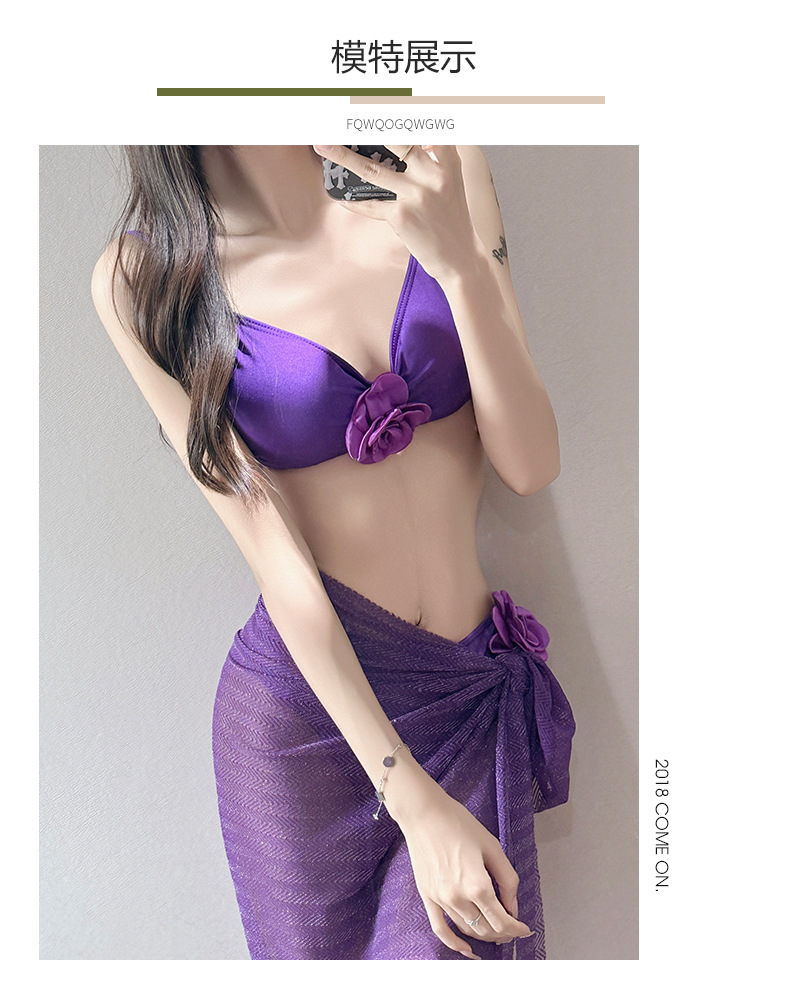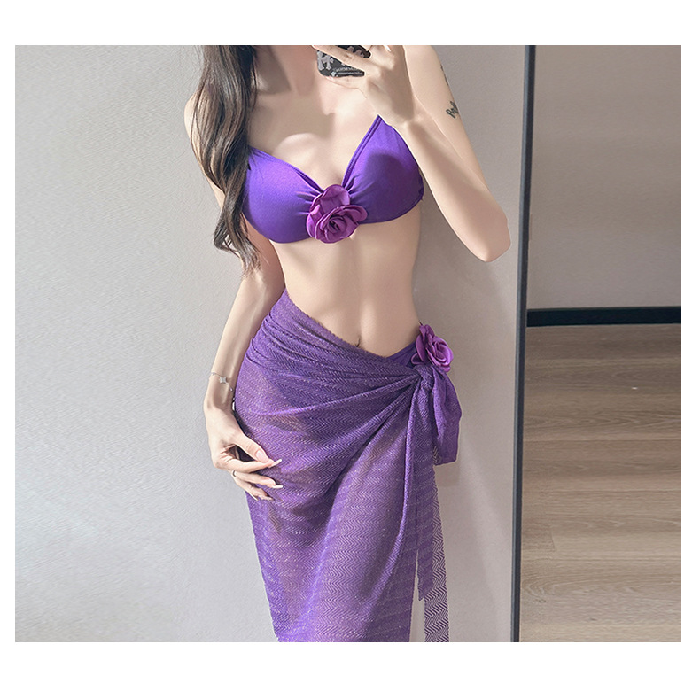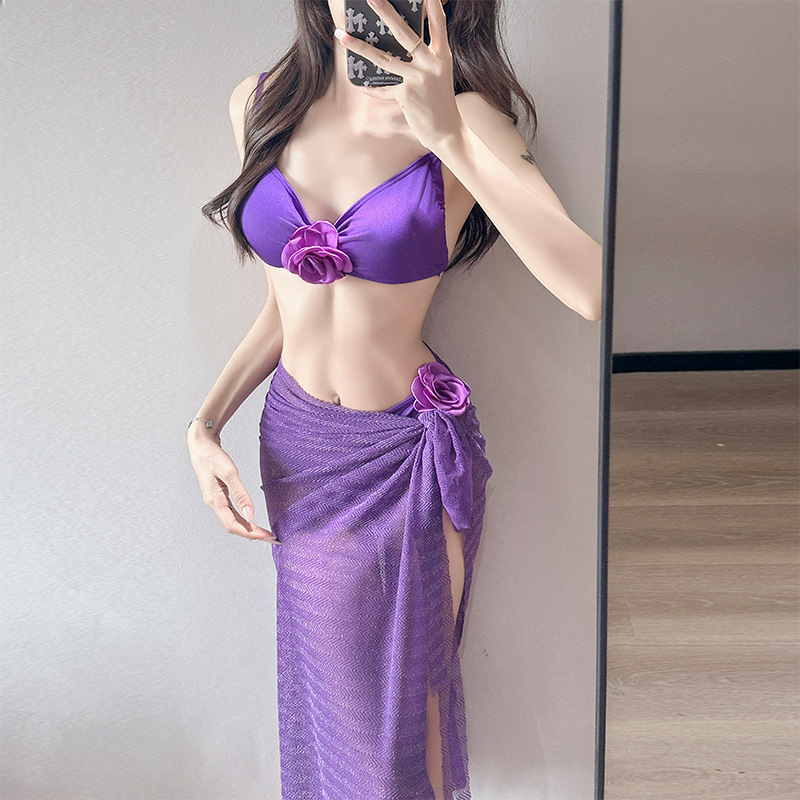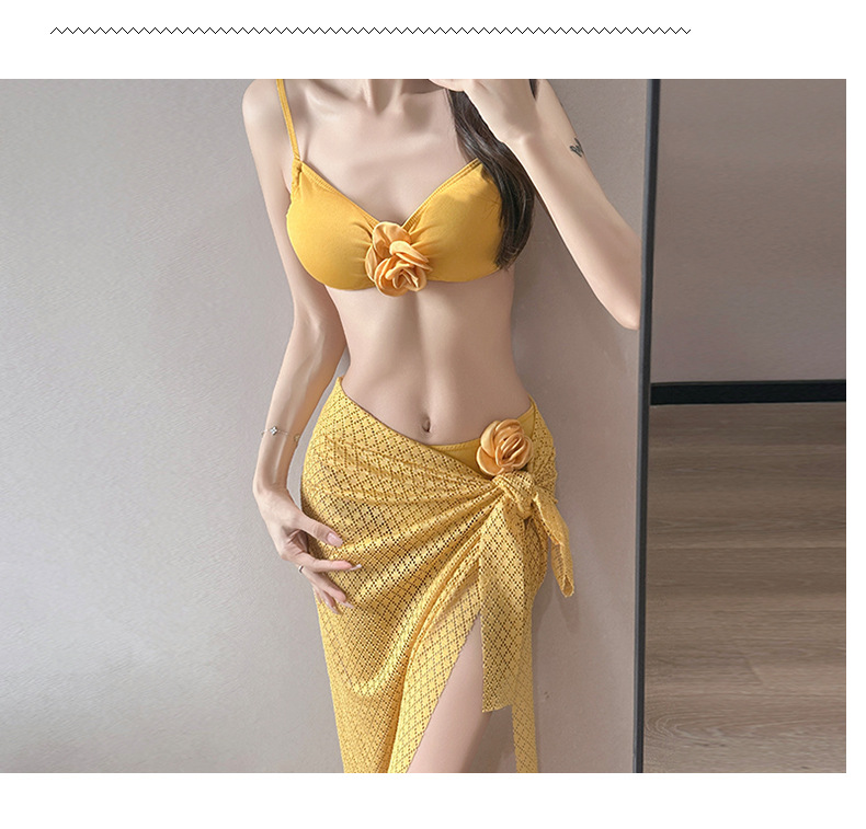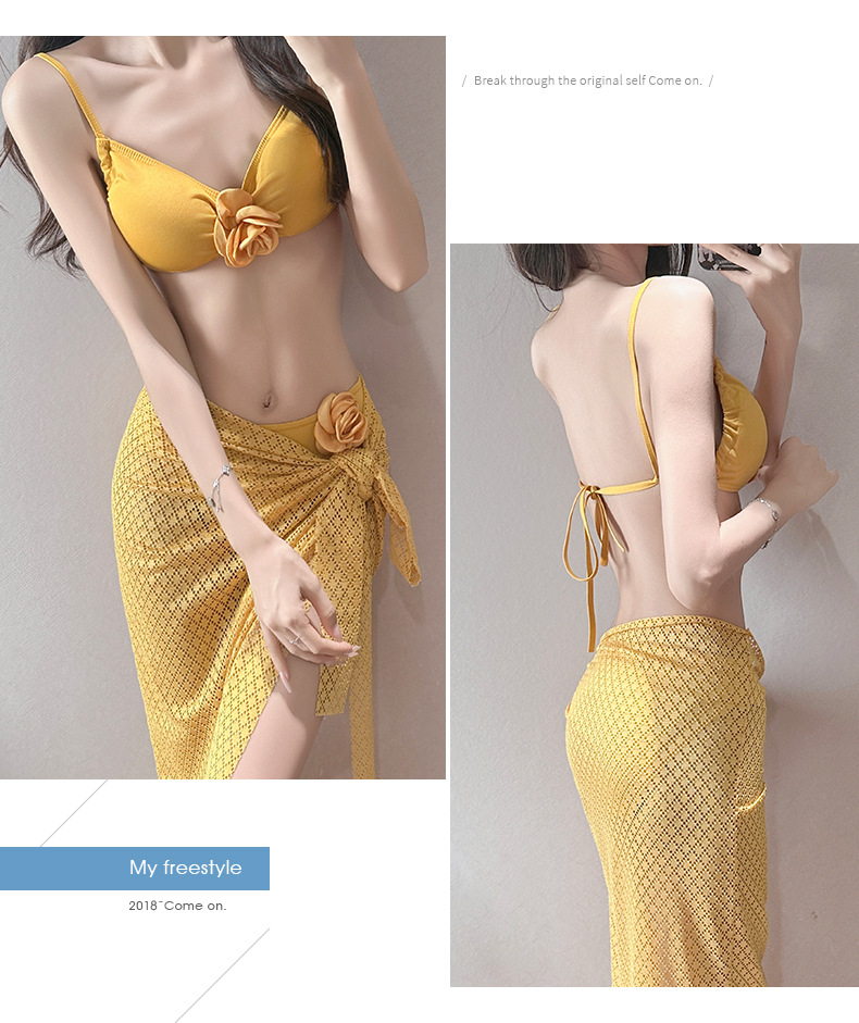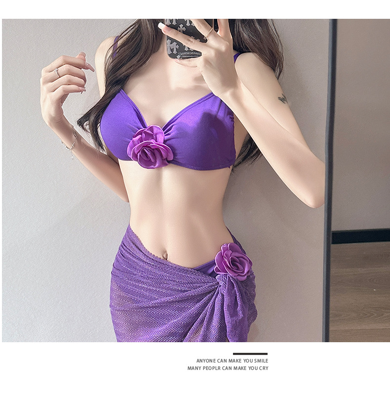 여름 스커트 비키니 3피스 프렌치 솔리드 컬러 기질 입체 장미 아름다운 슈퍼 요정 화이트 비치 온천스토어 가기