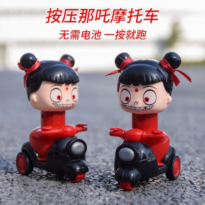 Na Zha 프레스 오토바이 관성 풀백 장난감 자동차 어린이 소년과 소녀 선물 유치원 상품 노점 도매