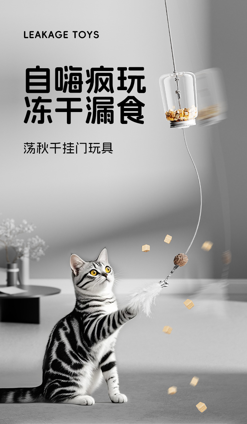 먹이가 없는 고양이 장난감, 자기 자극 및 지루함 해소, 스윙 및 흔들기 교육용 장난감, 고양이 간식, 동결 건조된 공, 문 걸이 고양이 장난감