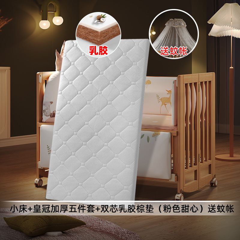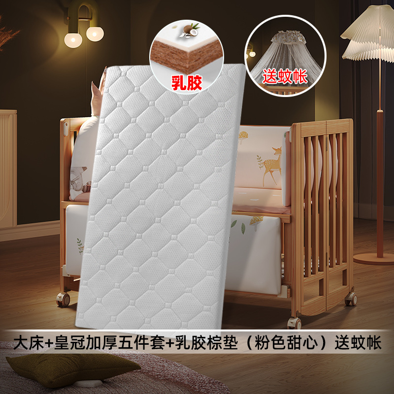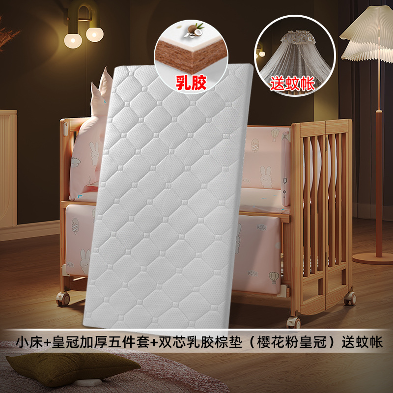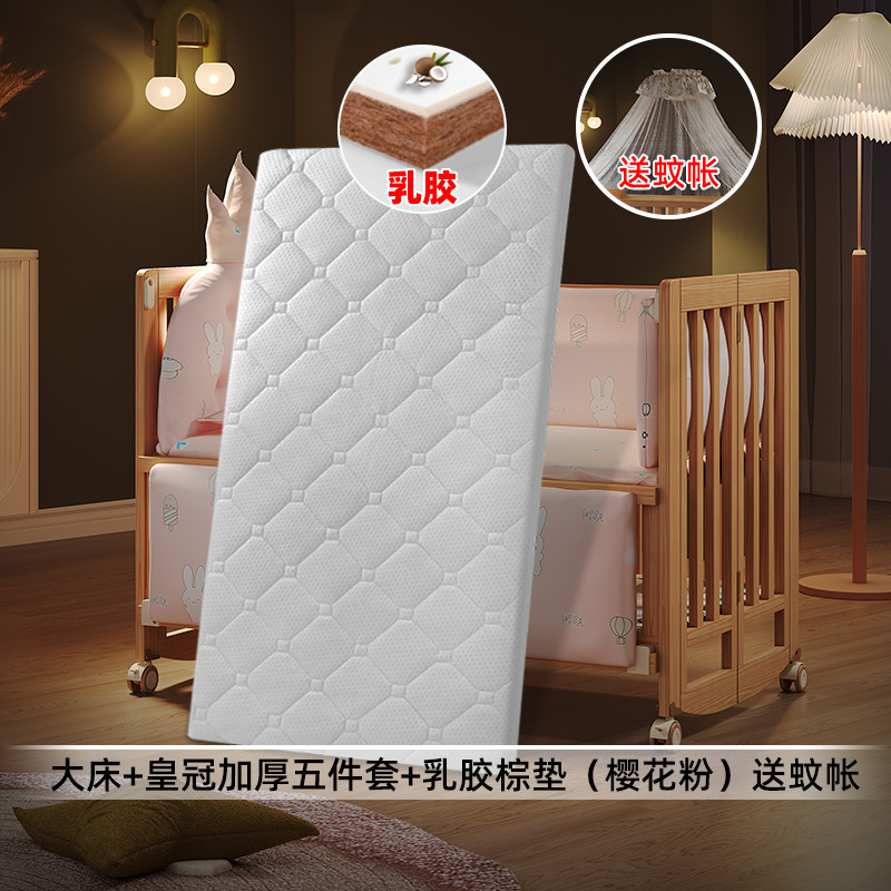 • 대형 침대 + 더블 코어 라텍스 브라운 매트 + 크라운 두꺼워진 5종 세트(사쿠라 핑크 크라운) 모기장 포함