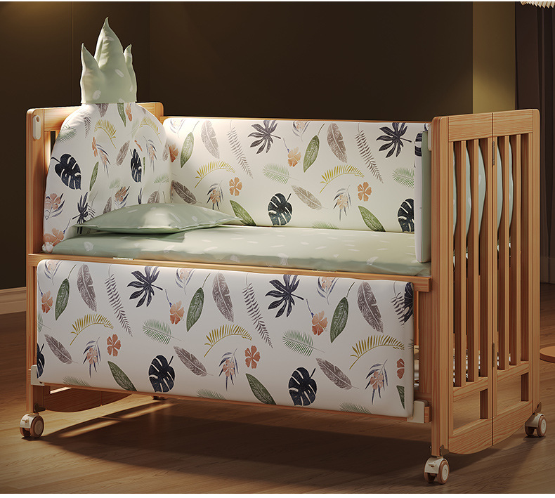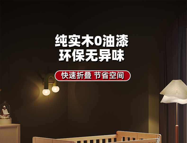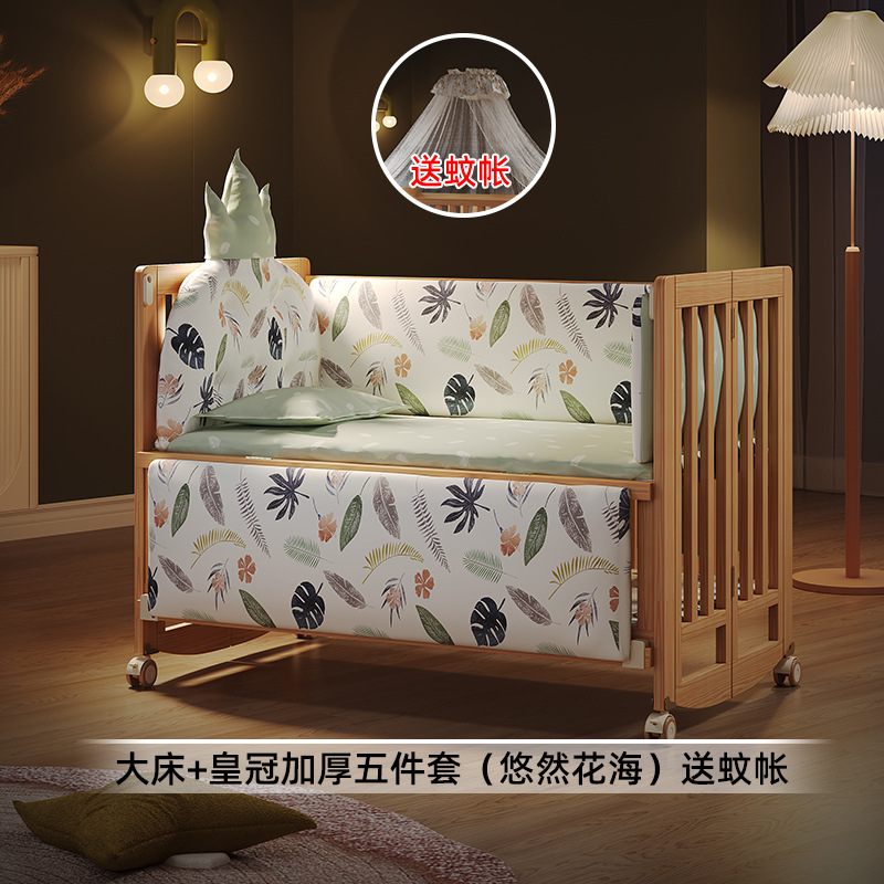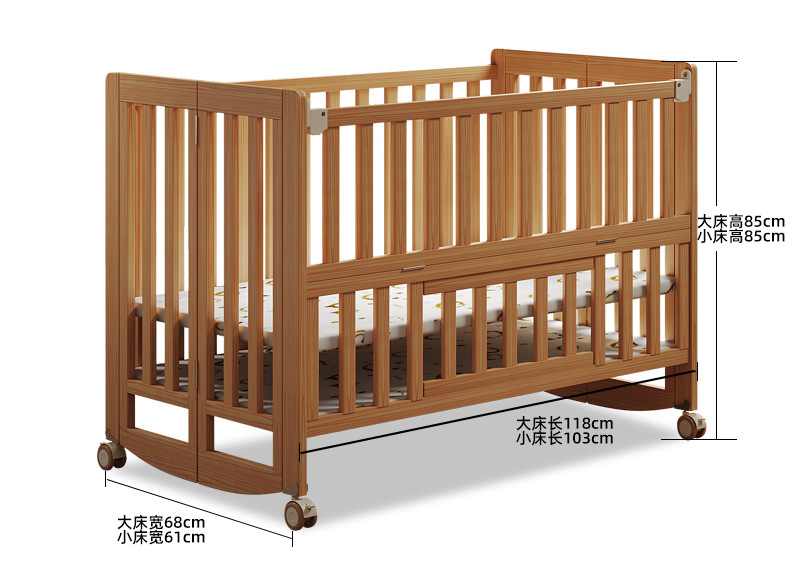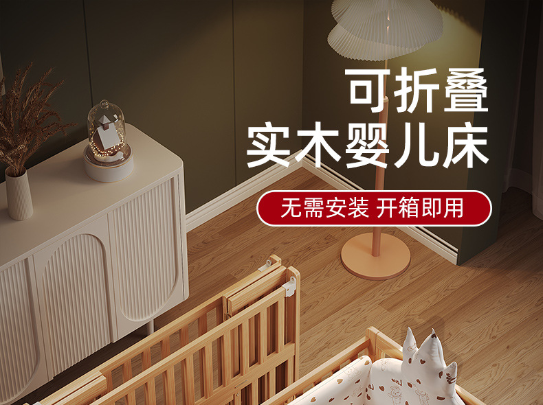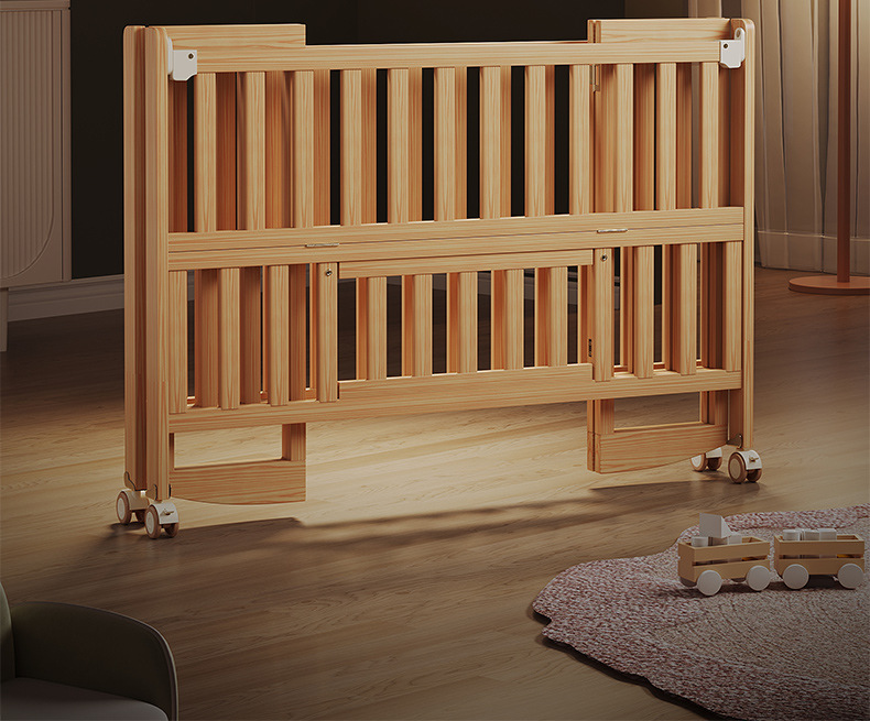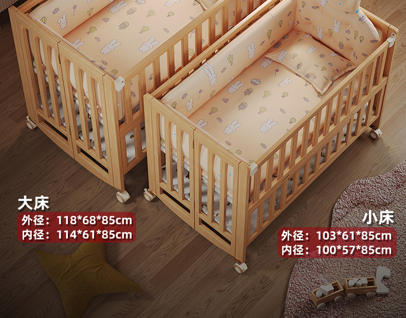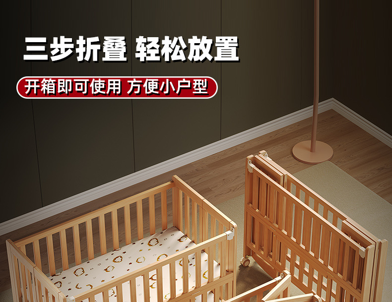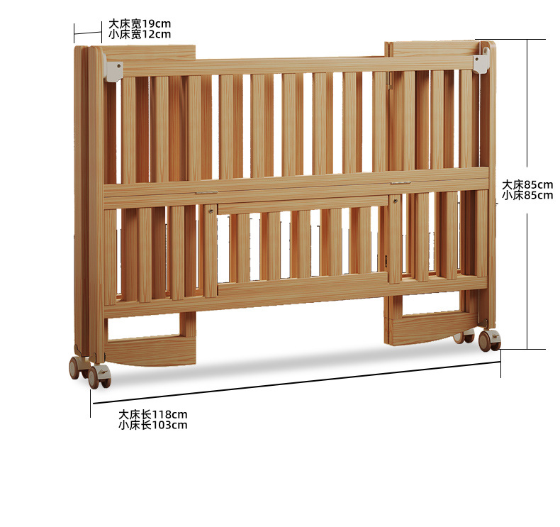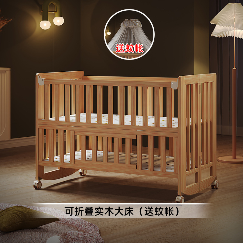 유아용 침대 접이식 단단한 나무 페인트가 없는 이동식 아기 침대 다기능 신생아 접합 대형 침대