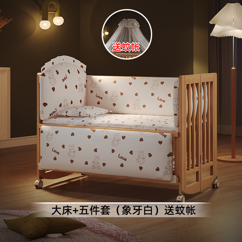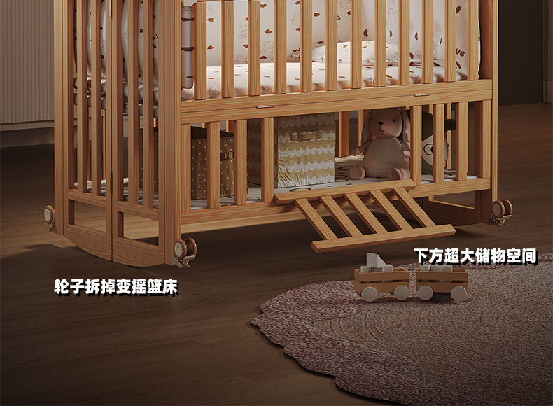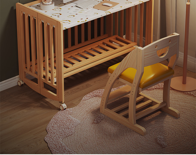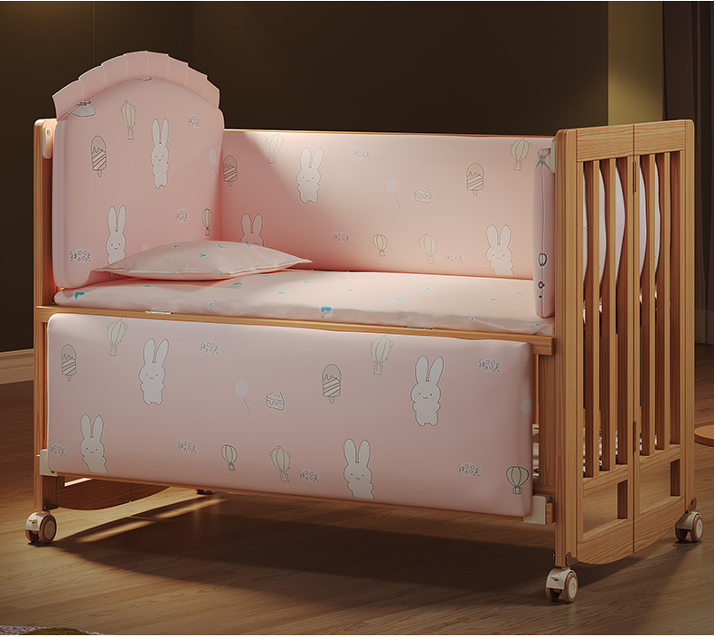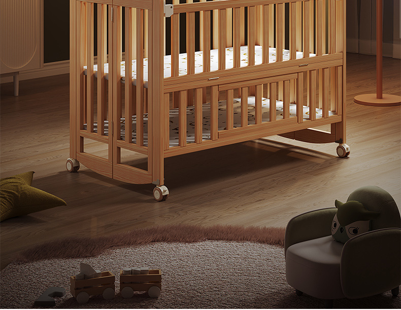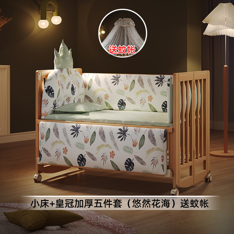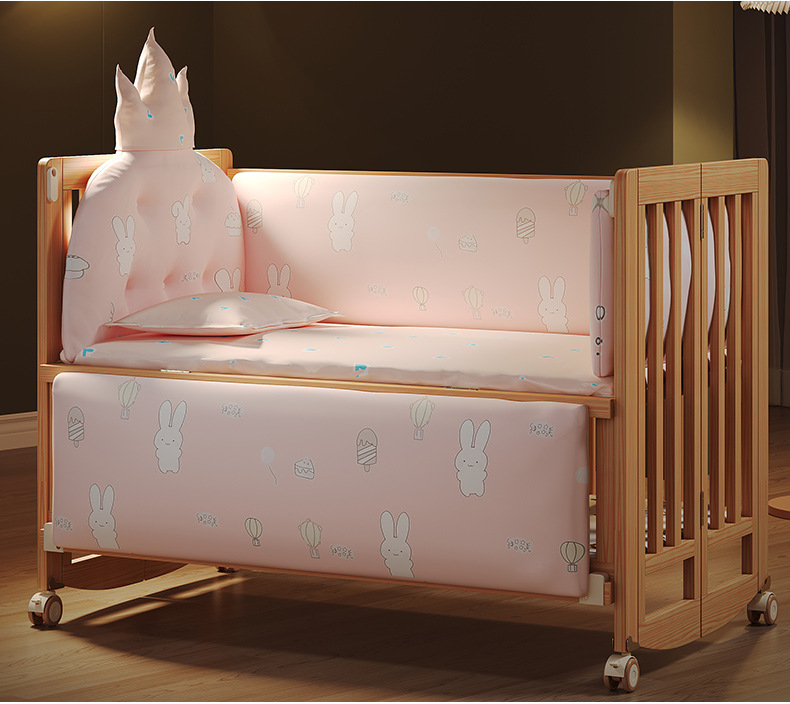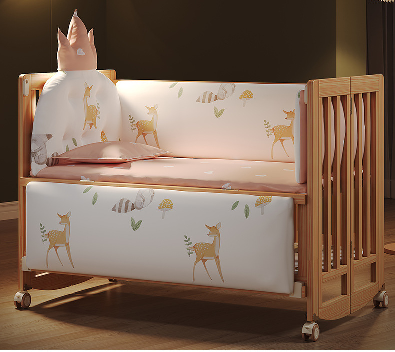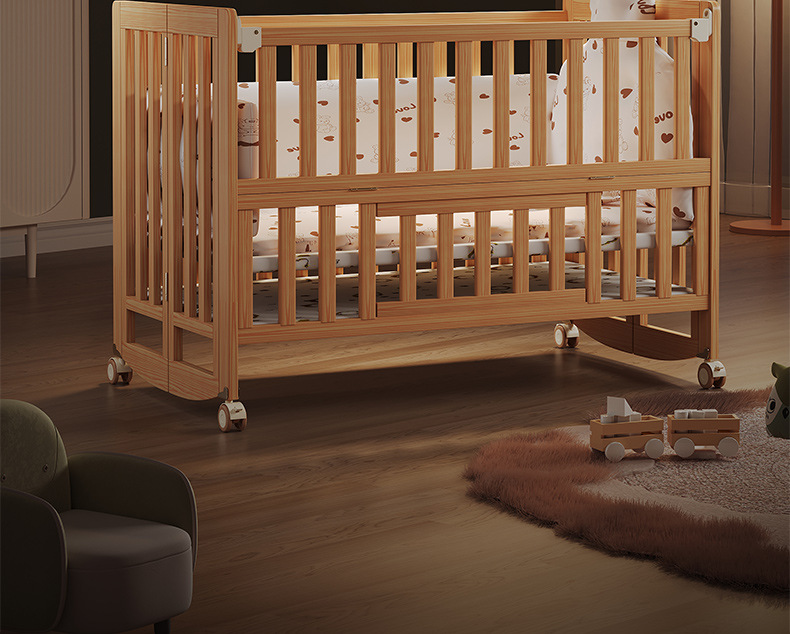유아용 침대 접이식 단단한 나무 페인트가 없는 이동식 아기 침대 다기능 신생아 접합 대형 침대