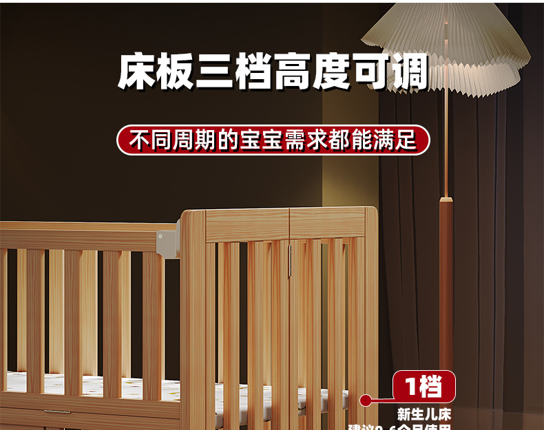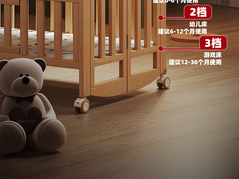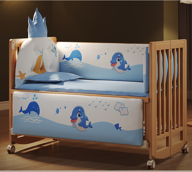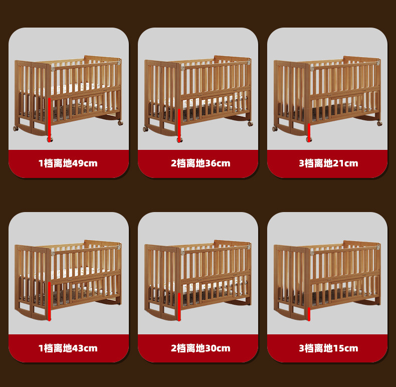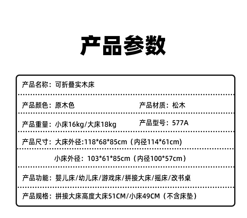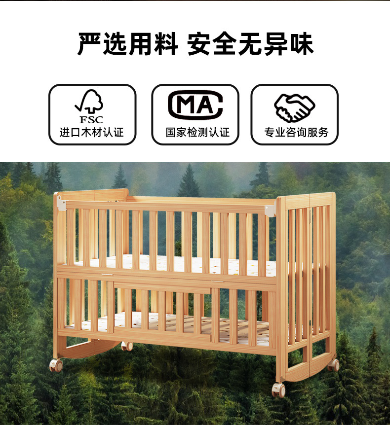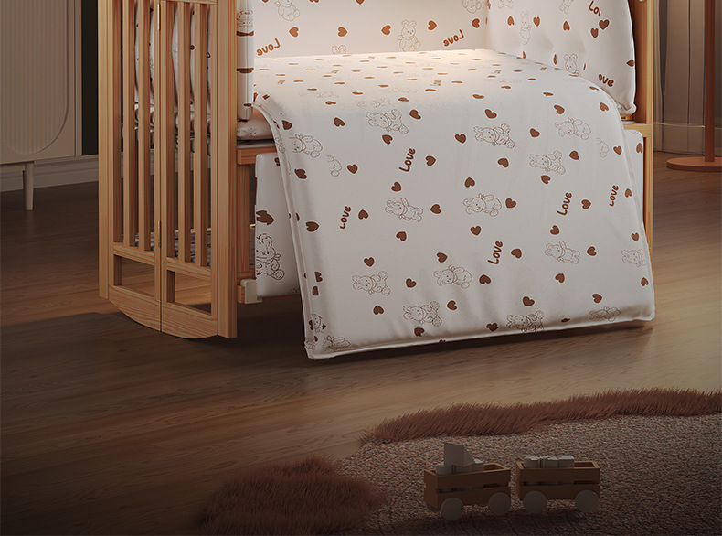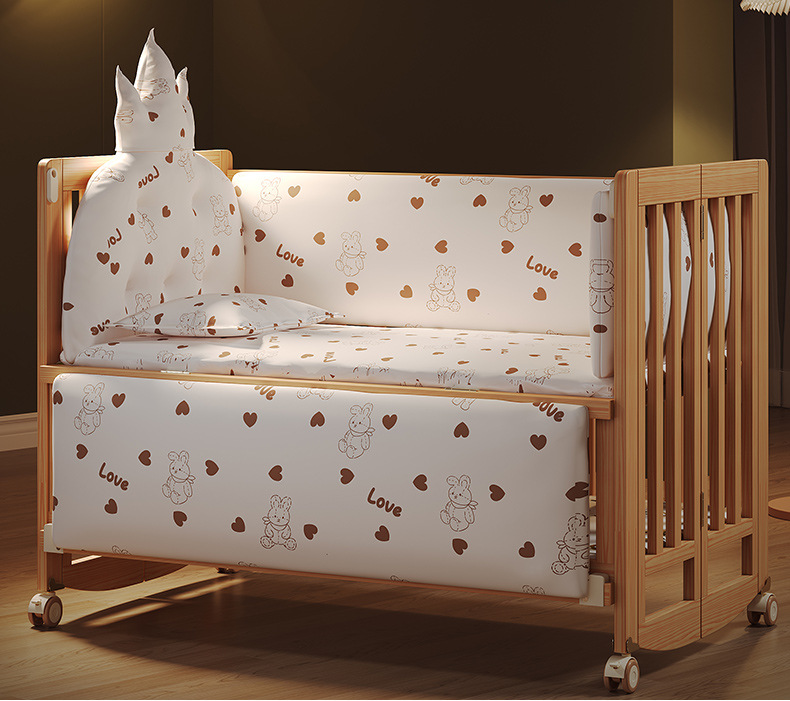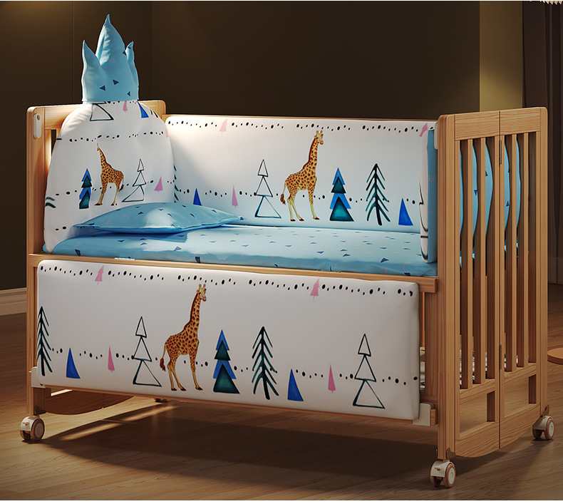 유아용 침대 접이식 단단한 나무 페인트가 없는 이동식 아기 침대 다기능 신생아 접합 대형 침대