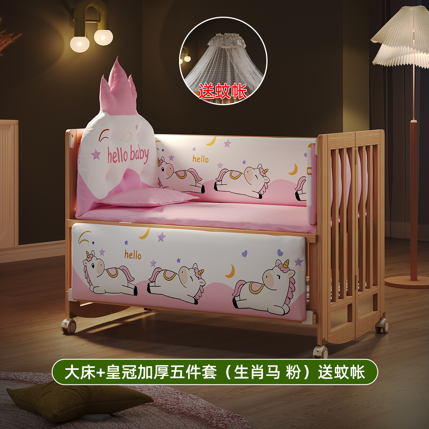• 큰 침대 + 크라운 두꺼운 5종 세트 (말띠 핑크, 모기장 증정)