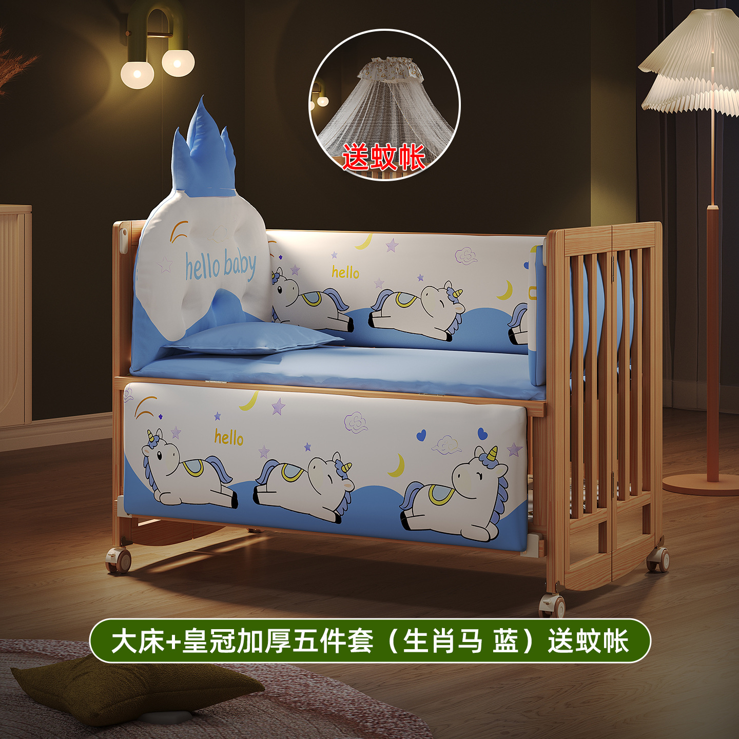 • 큰 침대 + 크라운 두꺼운 5종 세트 (십이지 블루, 모기장 증정)