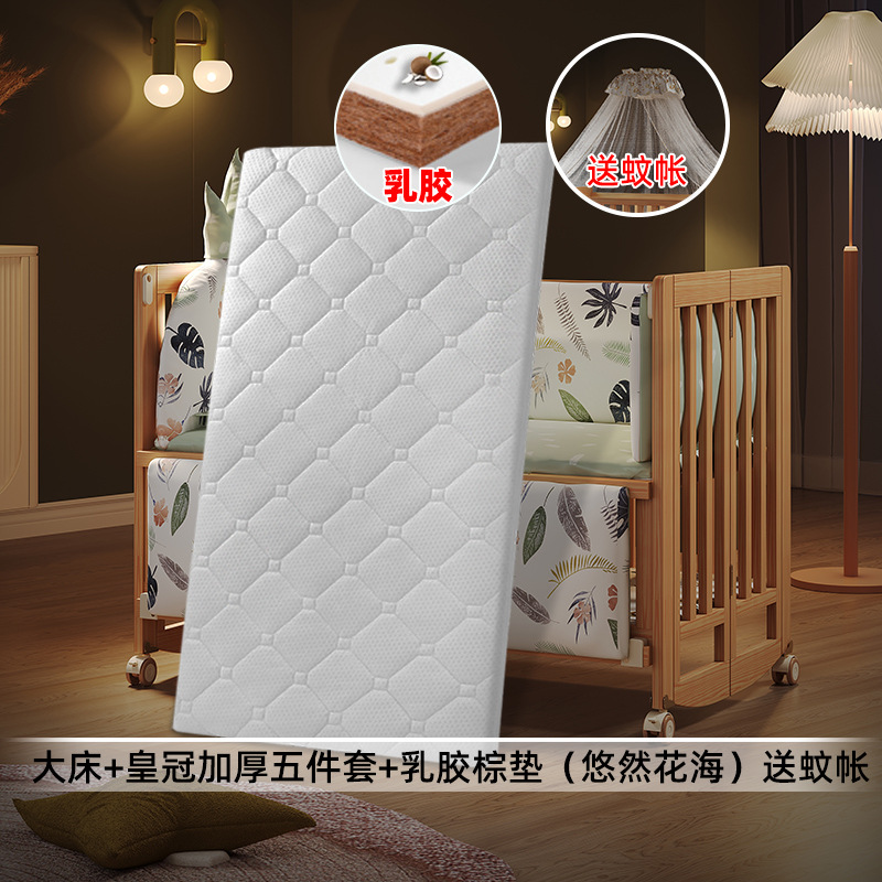 • 대형 침대 + 더블 코어 라텍스 브라운 매트 + 크라운 두꺼운 5종 세트(여유로운 꽃 바다) 모기장 포함