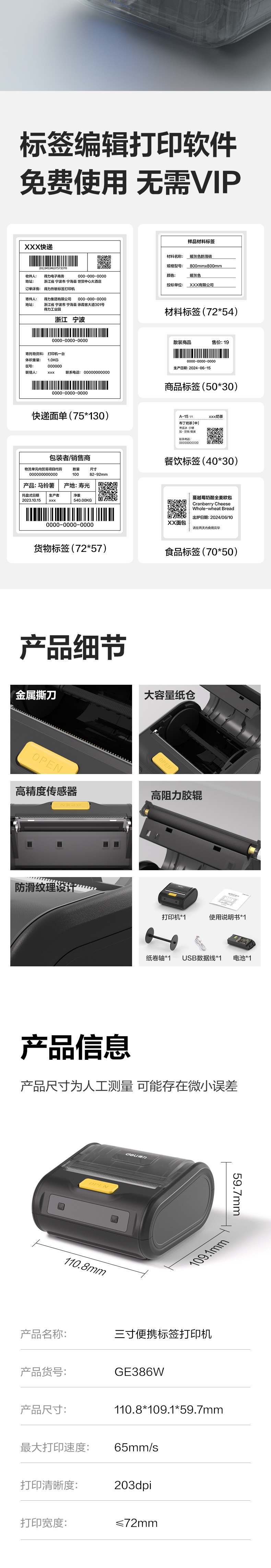 Deli GE386W 휴대용 블루투스 열전사 익스프레스 프린터, 익스프레스 메일러, Zhongtong, Yuantong, Shentong 및 기타 프린터