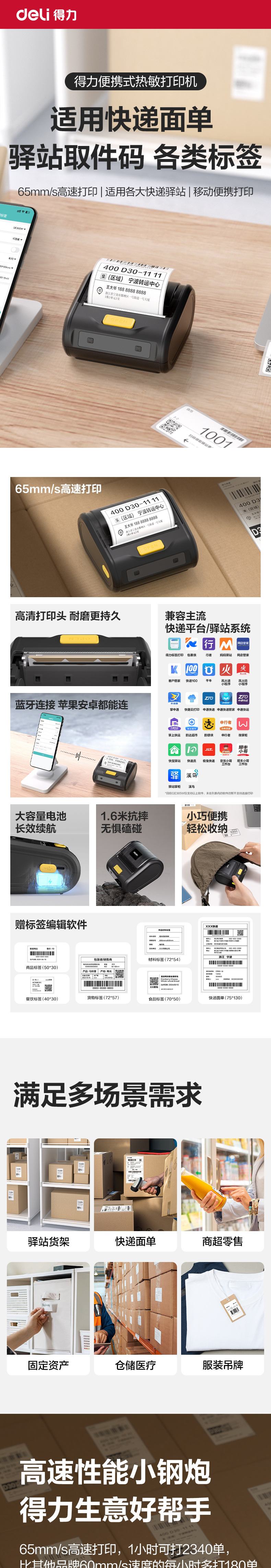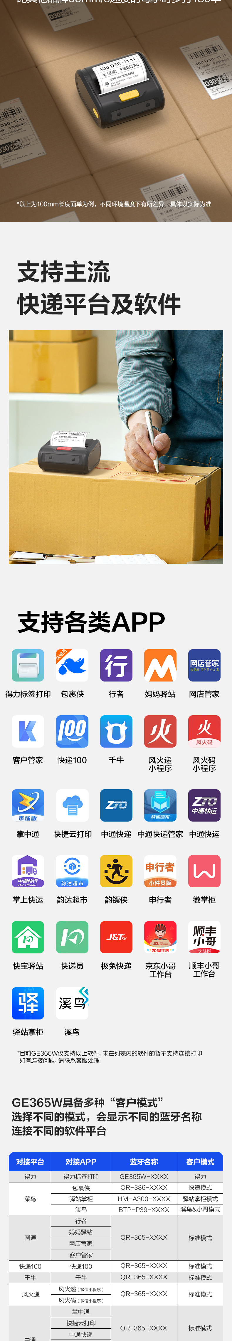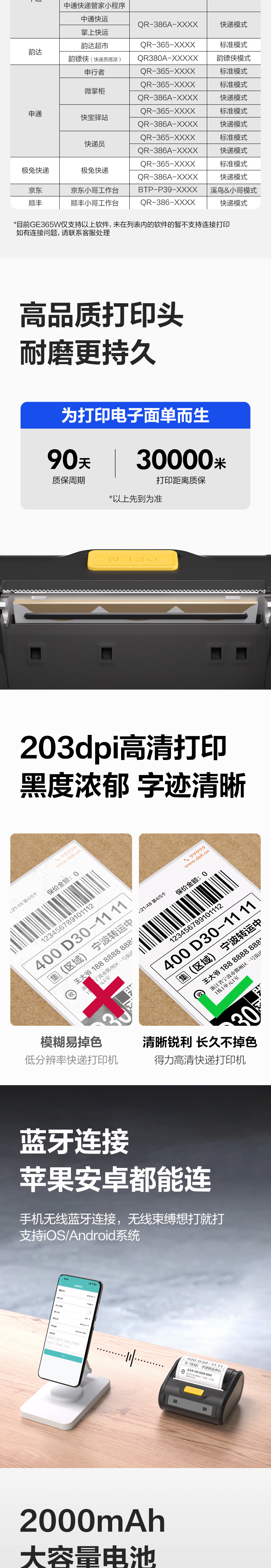 Deli GE386W 휴대용 블루투스 열전사 익스프레스 프린터, 익스프레스 메일러, Zhongtong, Yuantong, Shentong 및 기타 프린터스토어 가기