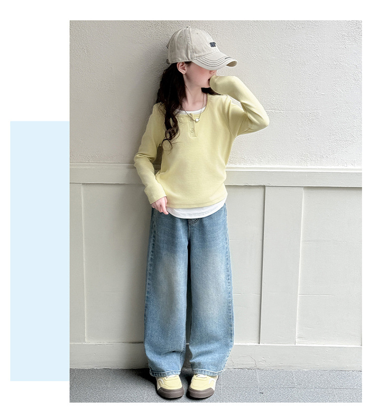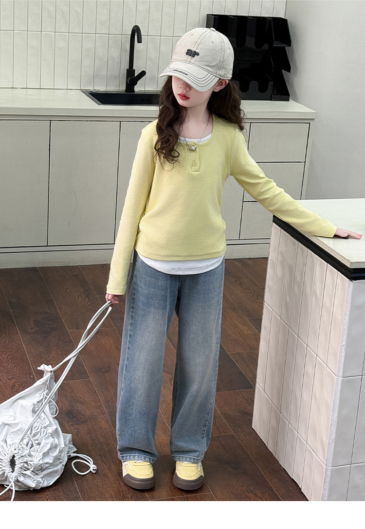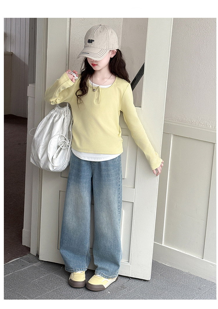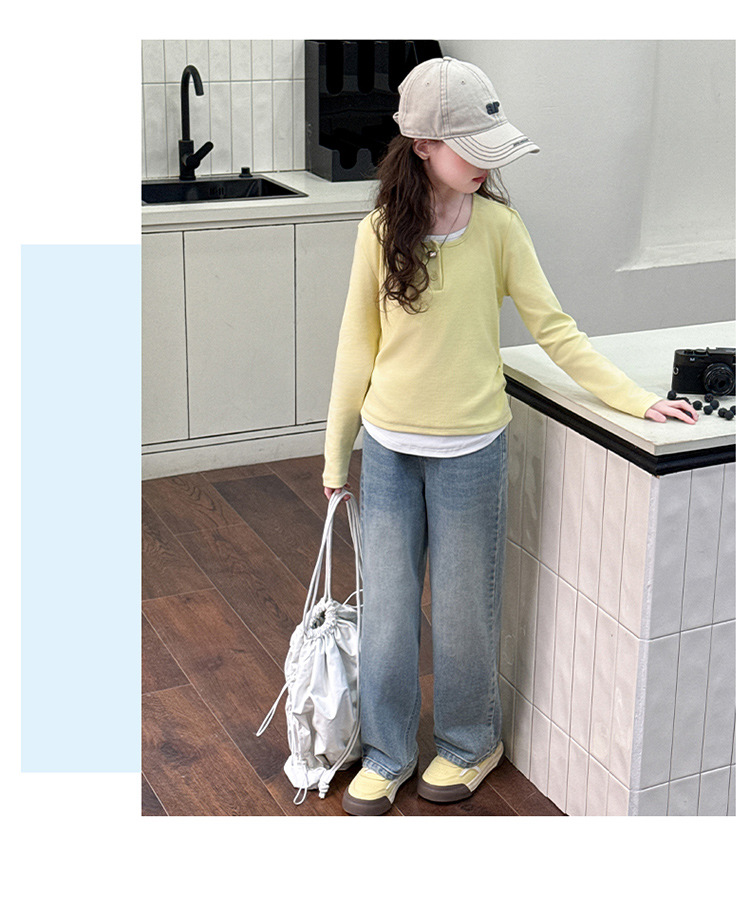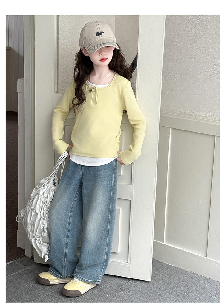 여아용 긴팔 티셔츠 2025년 봄 신상품 큰 어린이 가짜 투피스 탑 어린이 봄 스타일 슬림 바닥 셔츠스토어 가기