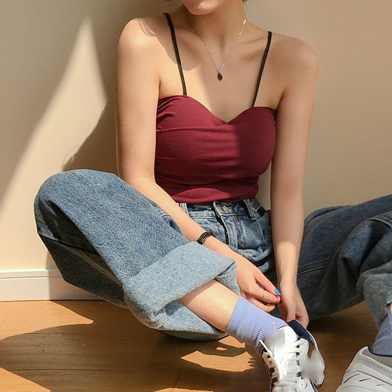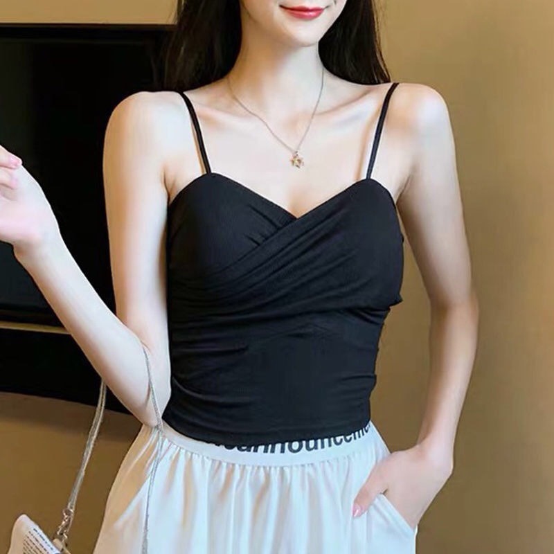 Ins 스타일 심플 스레드 짧은 조끼 여성 솔리드 컬러 크로스 슬링 바닥 탑 소녀 가슴 감싸는 여름 얇은스토어 가기